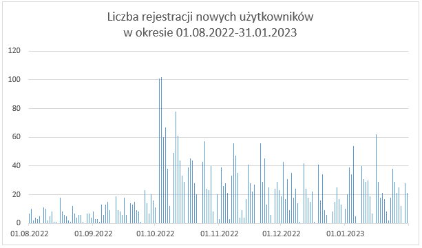 Wykres przedstawia dzienną liczbę rejestracji w okresie 01.08.2022-31.01.2023 r.