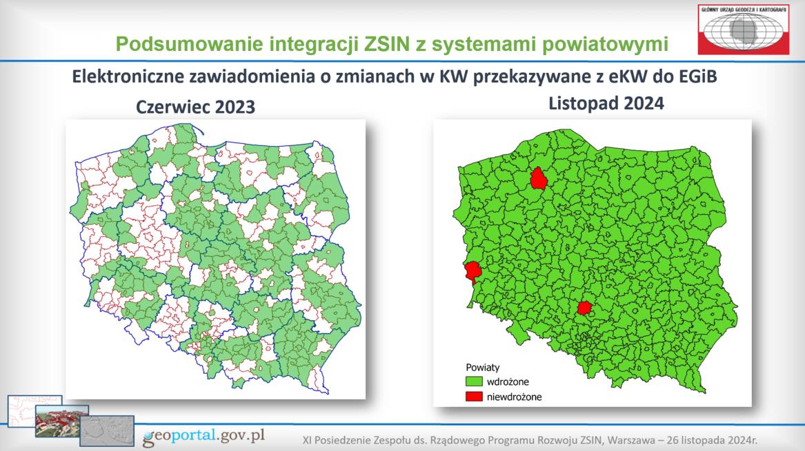 26 listopada 2024 r. pod przewodnictwem Głównego Geodety Kraju Alicji Kulki, Pełnomocnika Rady Ministrów do Spraw Rządowego Programu Rozwoju ZSIN, odbyło się XI spotkanie Zespołu ds. Rządowego Programu Rozwoju Zintegrowanego Systemu Informacji o Nieruchomościach.