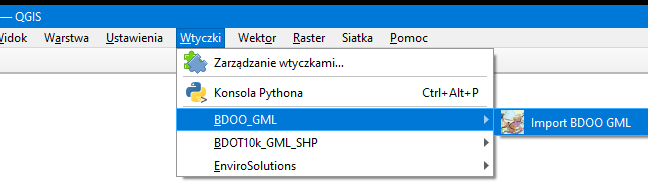 Do wizualizacji danych BDOT10k można wykorzystać dostępną w repozytorium oprogramowania QGIS zaktualizowaną wtyczkę „BDOO_GML”, opracowaną i udostępnioną przez zespół GUGiK.