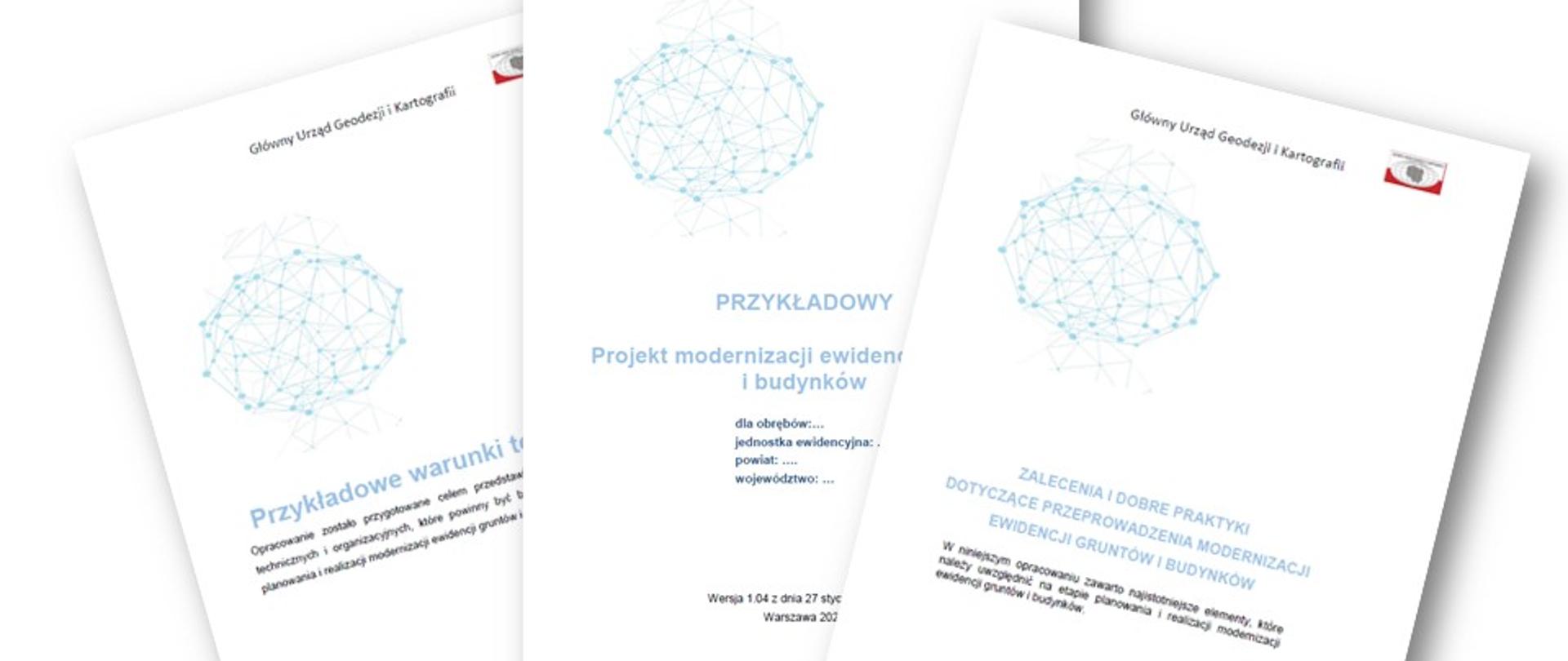 Celem wsparcia powiatów w realizacji modernizacji EGiB Główny Urząd Geodezji i Kartografii opracował „Zalecenia i dobre praktyki przeprowadzenia modernizacji egib”, „Przykładowy projekt modernizacji egib” oraz „Przykładowe warunki techniczne modernizacji egib”.