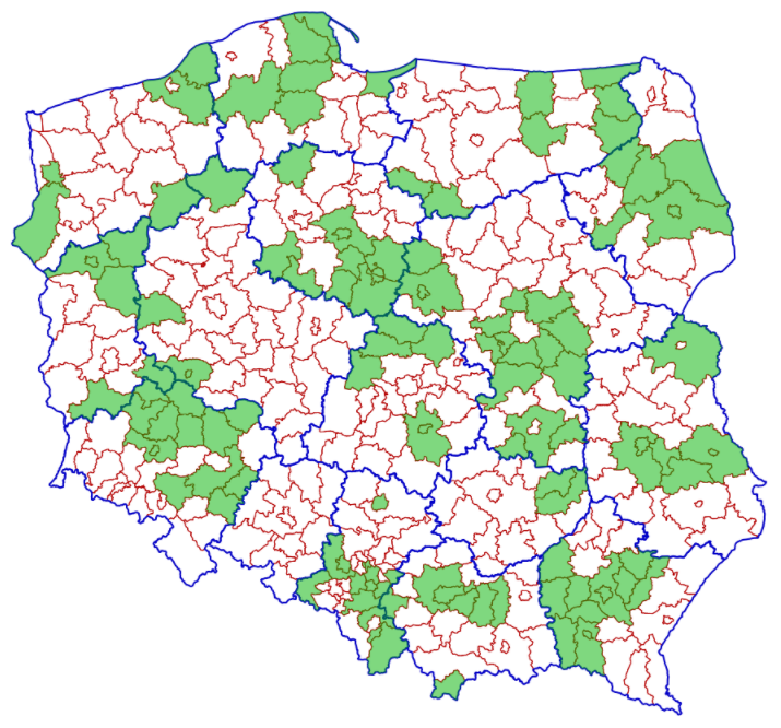 Aktualnie zawiadomienia elektroniczne odbierają już 122 powiaty przedstawione na załączonej mapie.