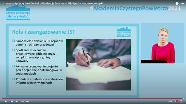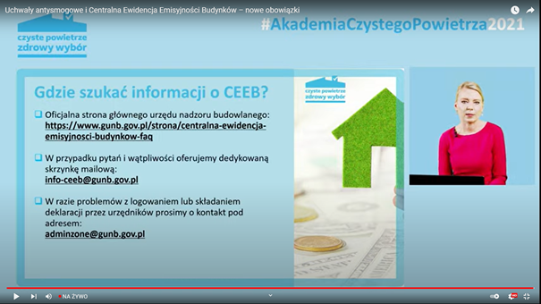 „Pomysł webinariów zrodził się jako odpowiedź na sytuację wywołaną COVID-19, która spowodowała przestój w działalności gospodarczej wielu firm. Przez Akademię Czystego Powietrza chcemy dotrzeć do szerokiego grona podmiotów świadczących usługi wspierane przez program „Czyste Powietrze” oraz doradzających beneficjentom. Akademia ma podnosić wiedzę na temat dostępnego wsparcia dla przyjaznych środowisku rozwiązań dotyczących zaopatrzenia budynków w energię” – mówił Michał Kurtyka, Minister Klimatu i Środowiska.