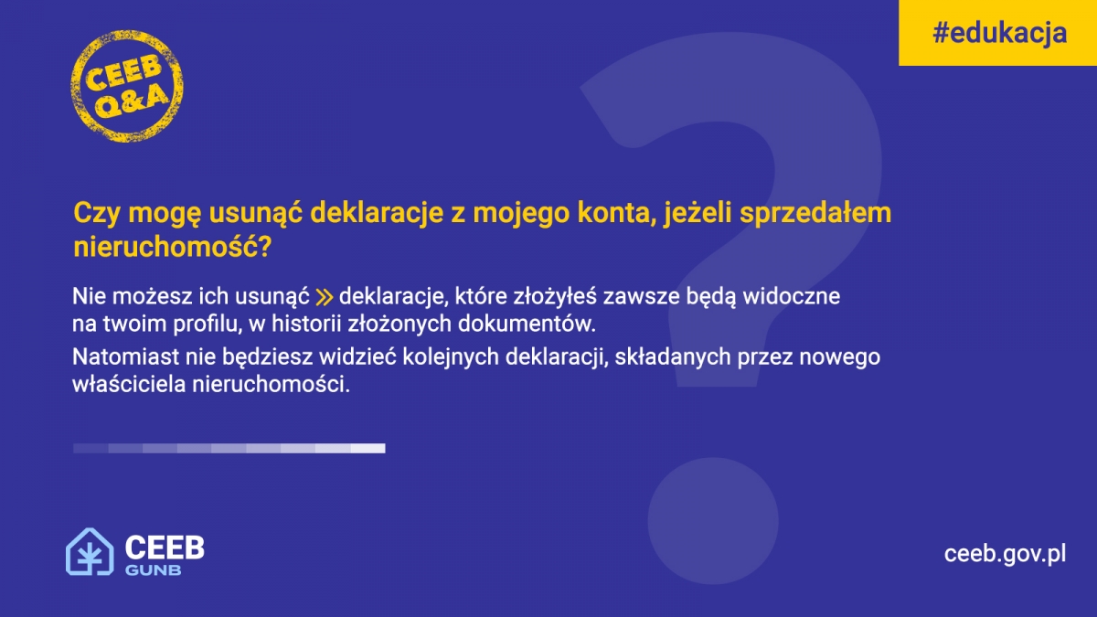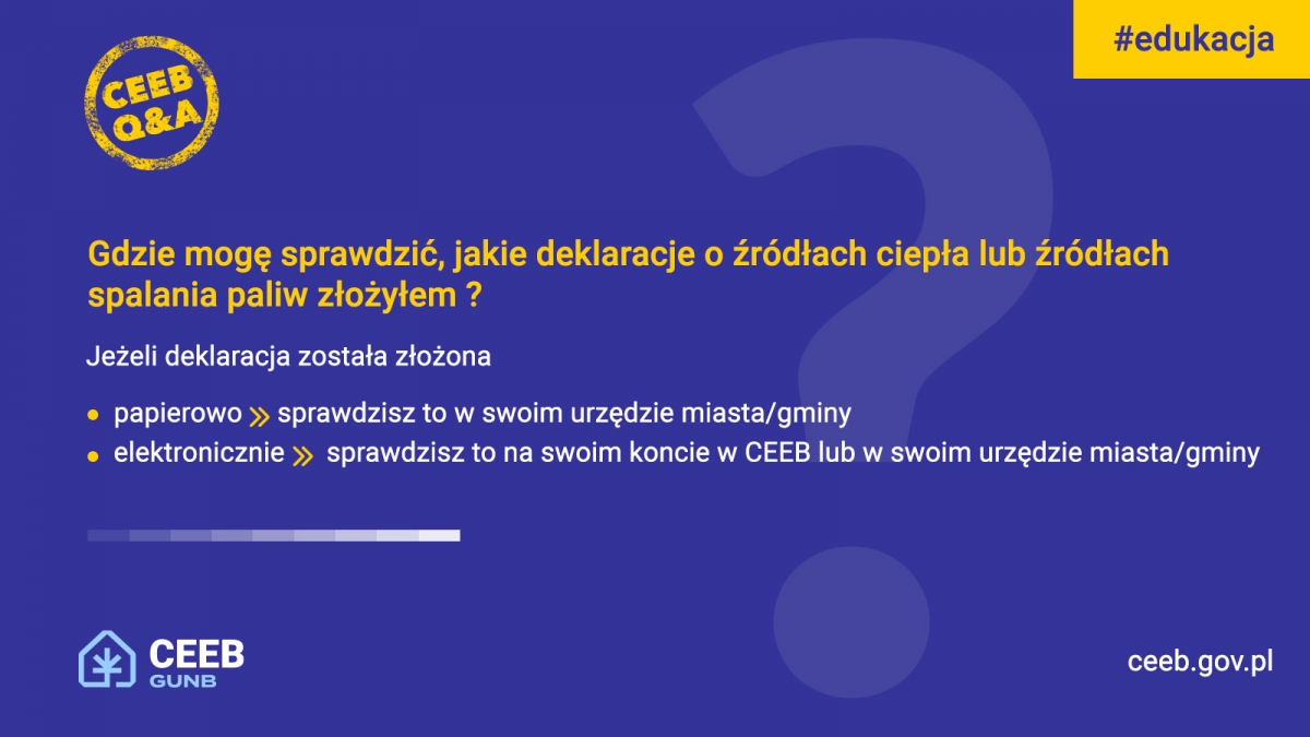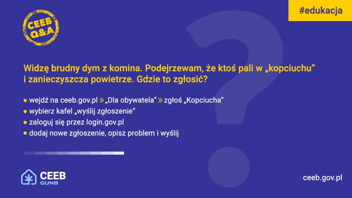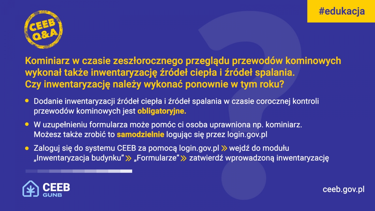W cyklu postów „CEEB - pytania i odpowiedzi”, systematycznie przedstawialiśmy i wyjaśnialiśmy różne zagadnienia dotyczące Centralnej Ewidencji Emisyjności Budynków. Posty publikowaliśmy na profilach naszego urzędu w mediach społecznościowych. W związku z ukazaniem się 15. wydania, przedstawiamy podsumowanie całego cyklu.