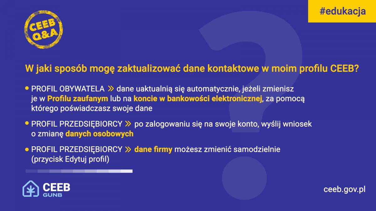 W cyklu „CEEB – pytania i odpowiedzi” odpowiadaliśmy na powtarzające się pytania, które w ostatnim czasie były najczęściej zadawane przez użytkowników na infolinii CEEB.