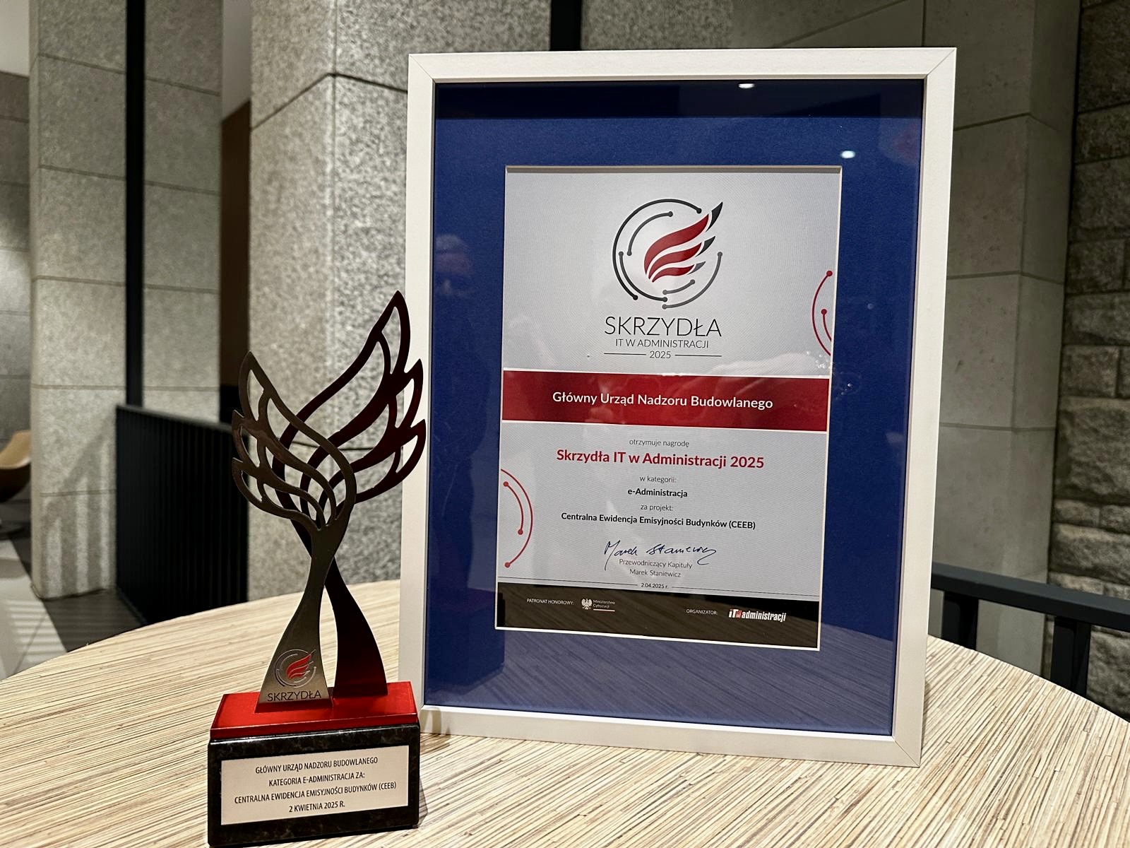 Centralna Ewidencja Emisyjności Budynków (CEEB) została nagrodzona w konkursie Skrzydła IT w Administracji w kategorii e-Administracja. Statuetkę odebrała Dorota Cabańska, Główny Inspektor Nadzoru Budowlanego. Uroczysta gala odbyła się 2 kwietnia br. podczas X Forum Kierowników IT w Administracji.