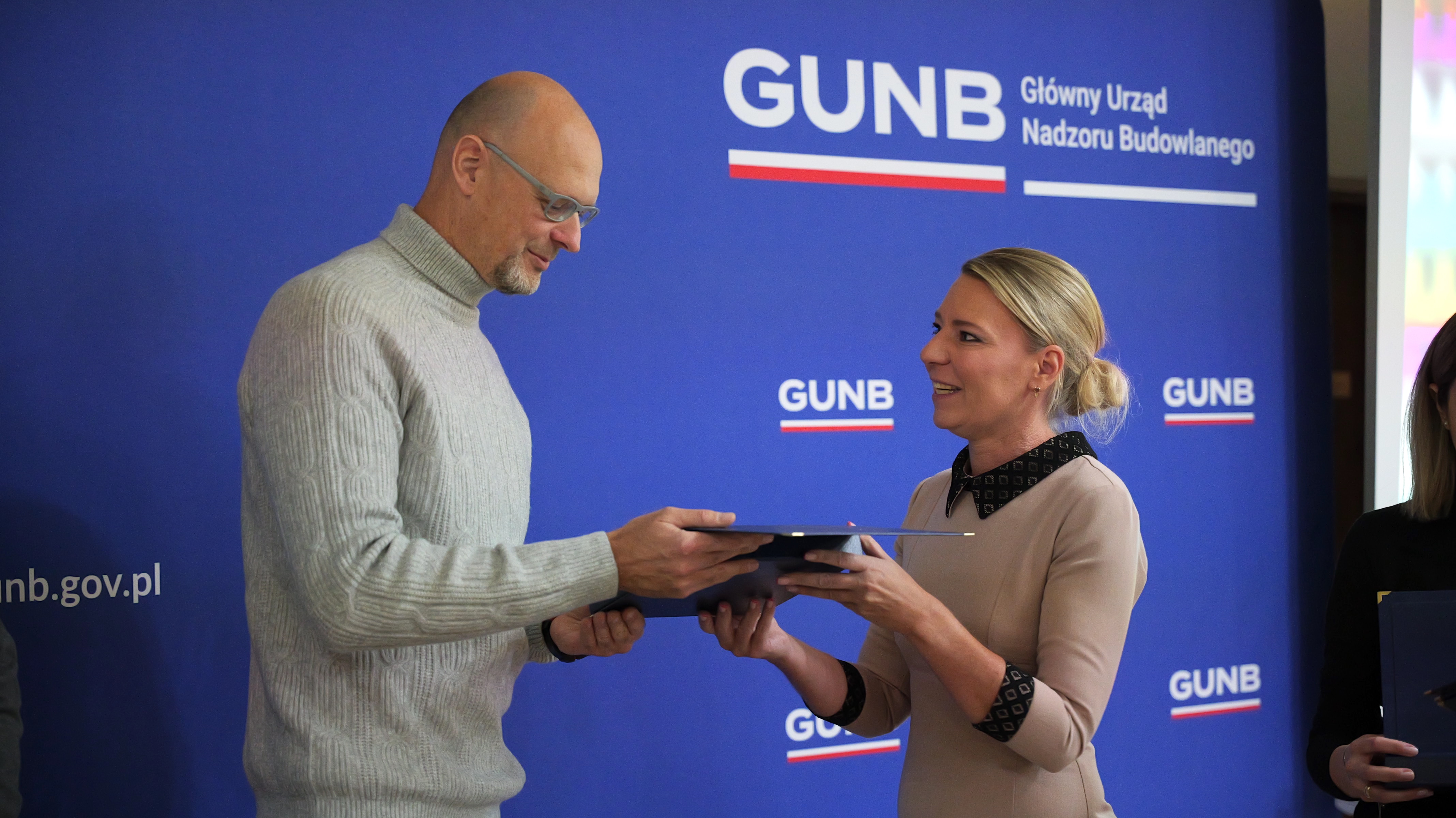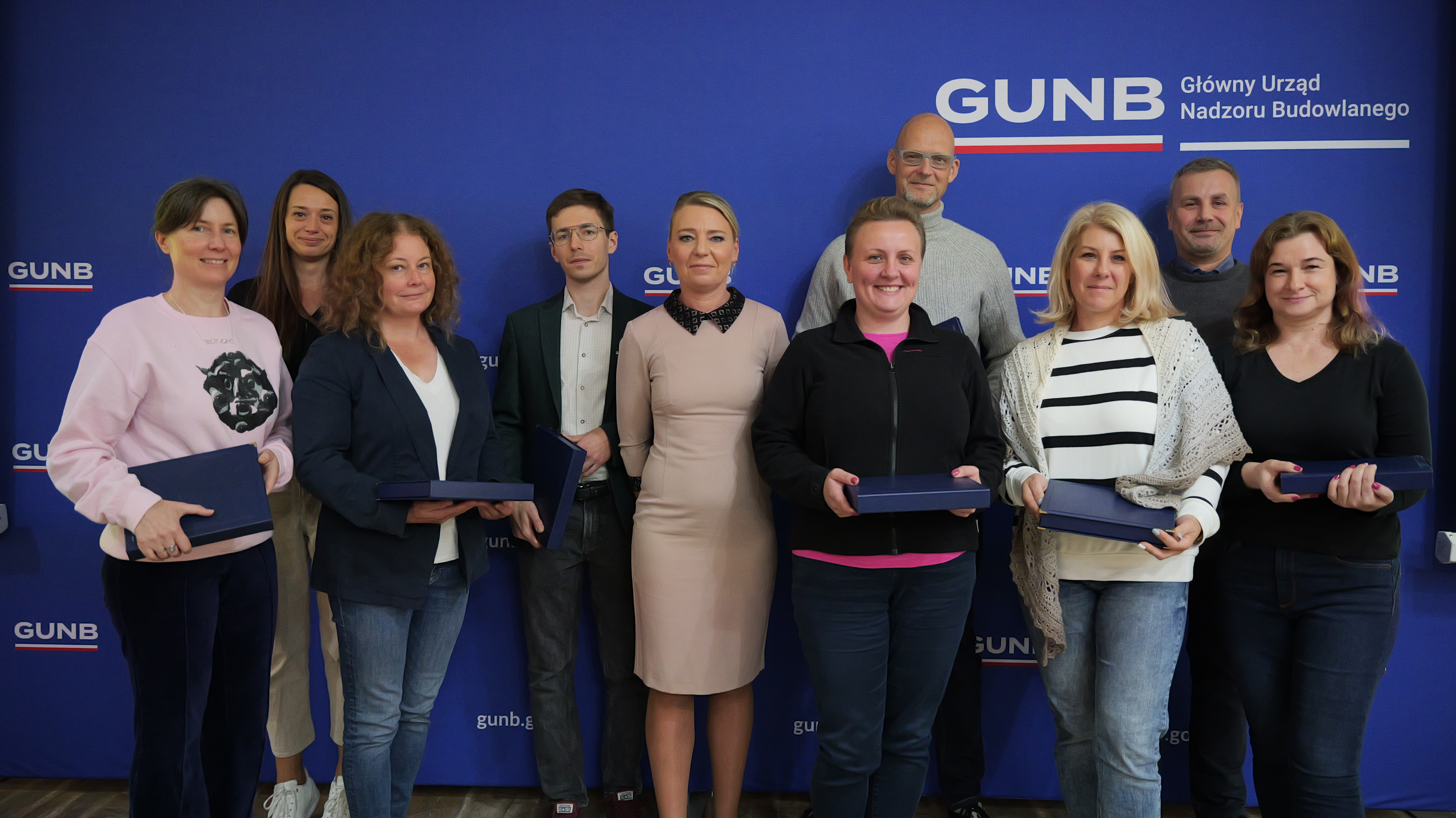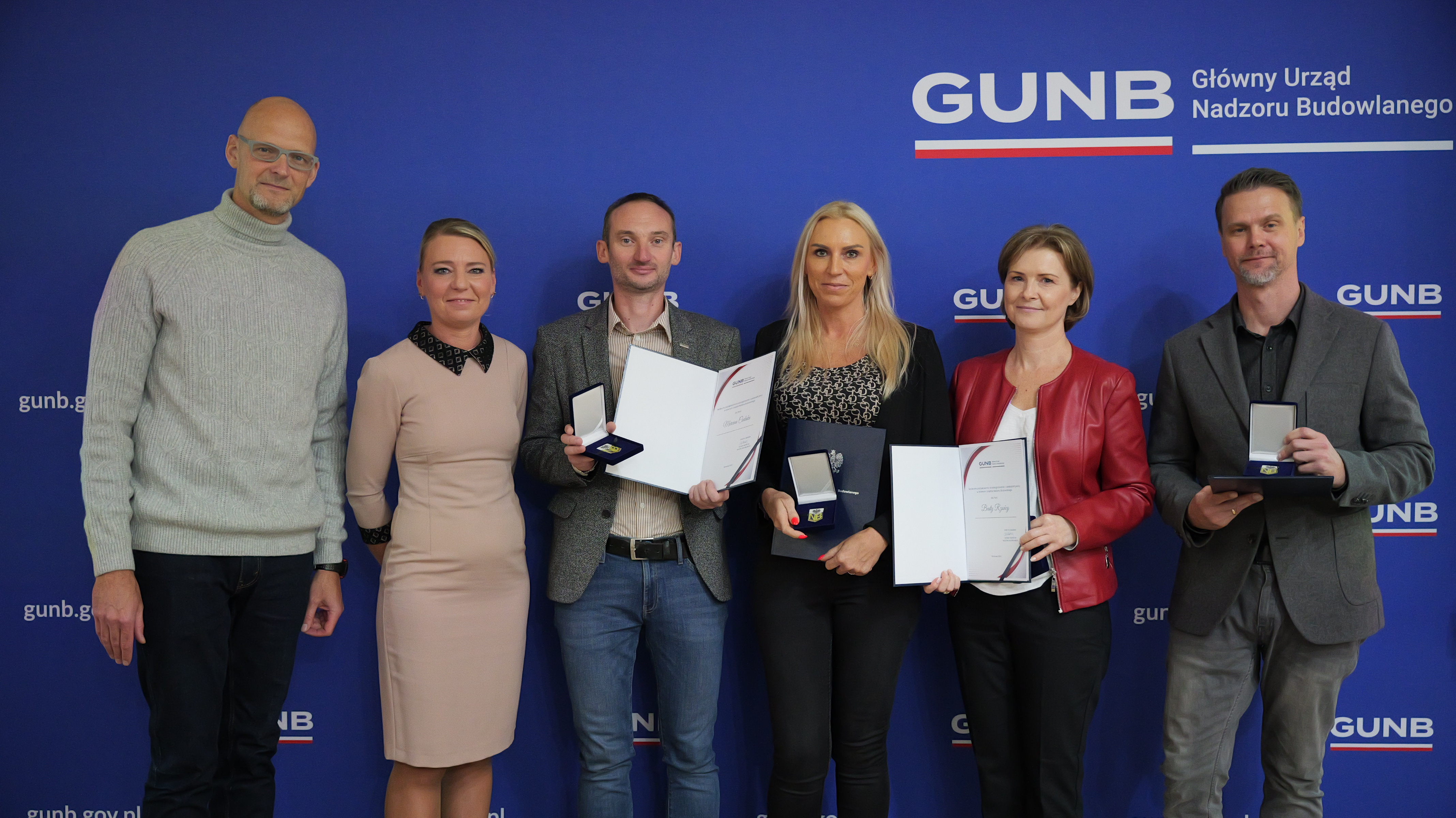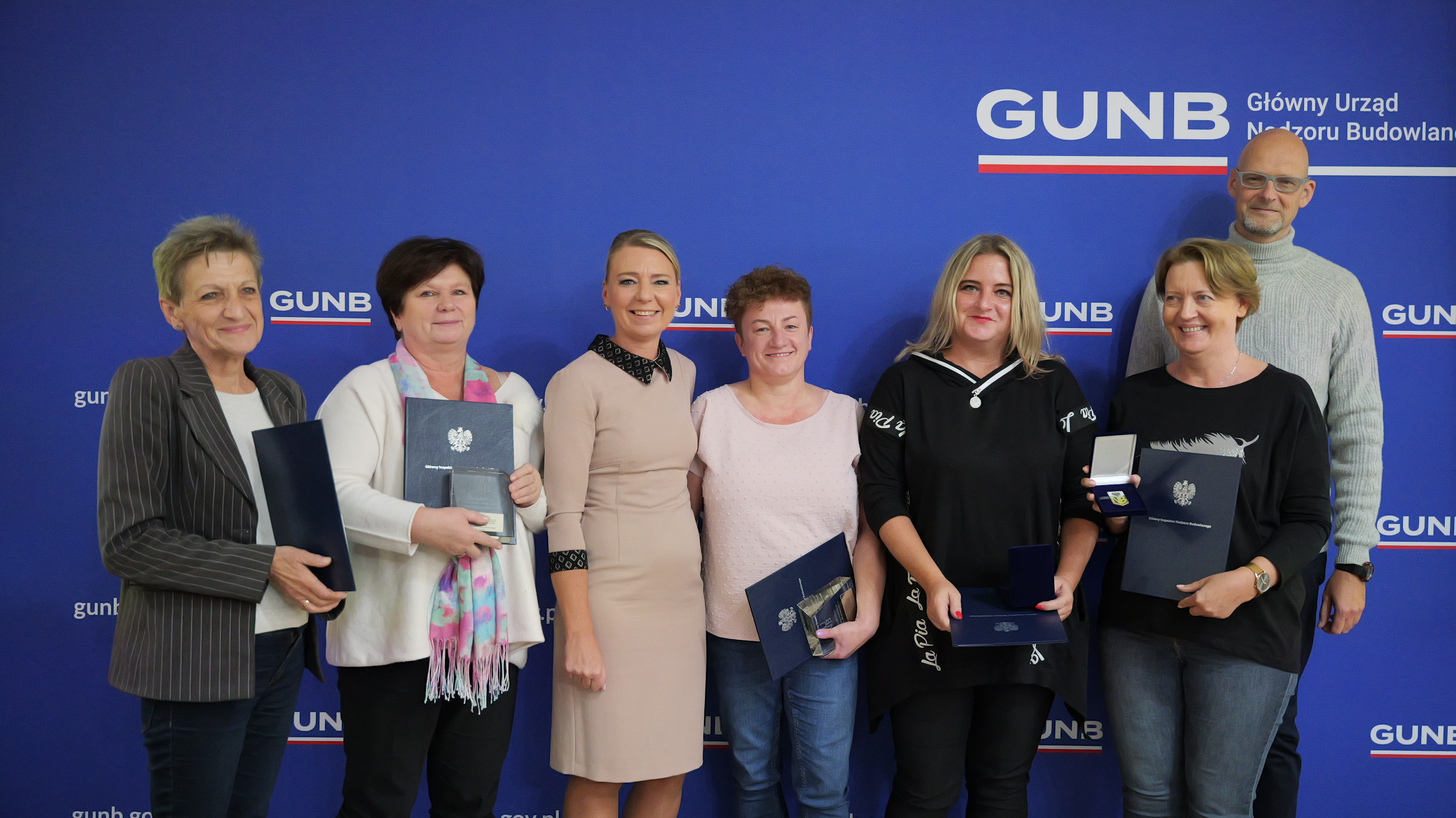 Dorota Cabańska, GINB wraz z Michałem Widelskim, Dyrektorem Generalnym GUNB, wręczyli wyróżnienia Głównego Inspektora Nadzoru Budowlanego. Pracownicy zostali wyróżnieni za zaangażowanie, wybitne osiągnięcia i całokształt pracy w urzędzie, a także za wieloletnią i oddaną pracę w GUNB. Najdłuższy staż pracy w GUNB wynosi aż 28 lat – taki staż ma aż 5 pracowników urzędu.