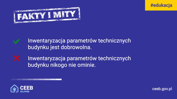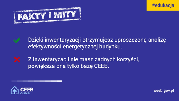 Od początku roku systematycznie przedstawiamy różne zagadnienia dotyczące Centralnej Ewidencji Emisyjności Budynków i inwentaryzacji budynków w CEEB. W tym celu przygotowaliśmy cykl postów edukacyjnych, które publikowaliśmy na profilach GUNB na X i LinkedIn, pod nazwą: „CEEB - fakty i mity”. Dziś podsumowujemy cykl.