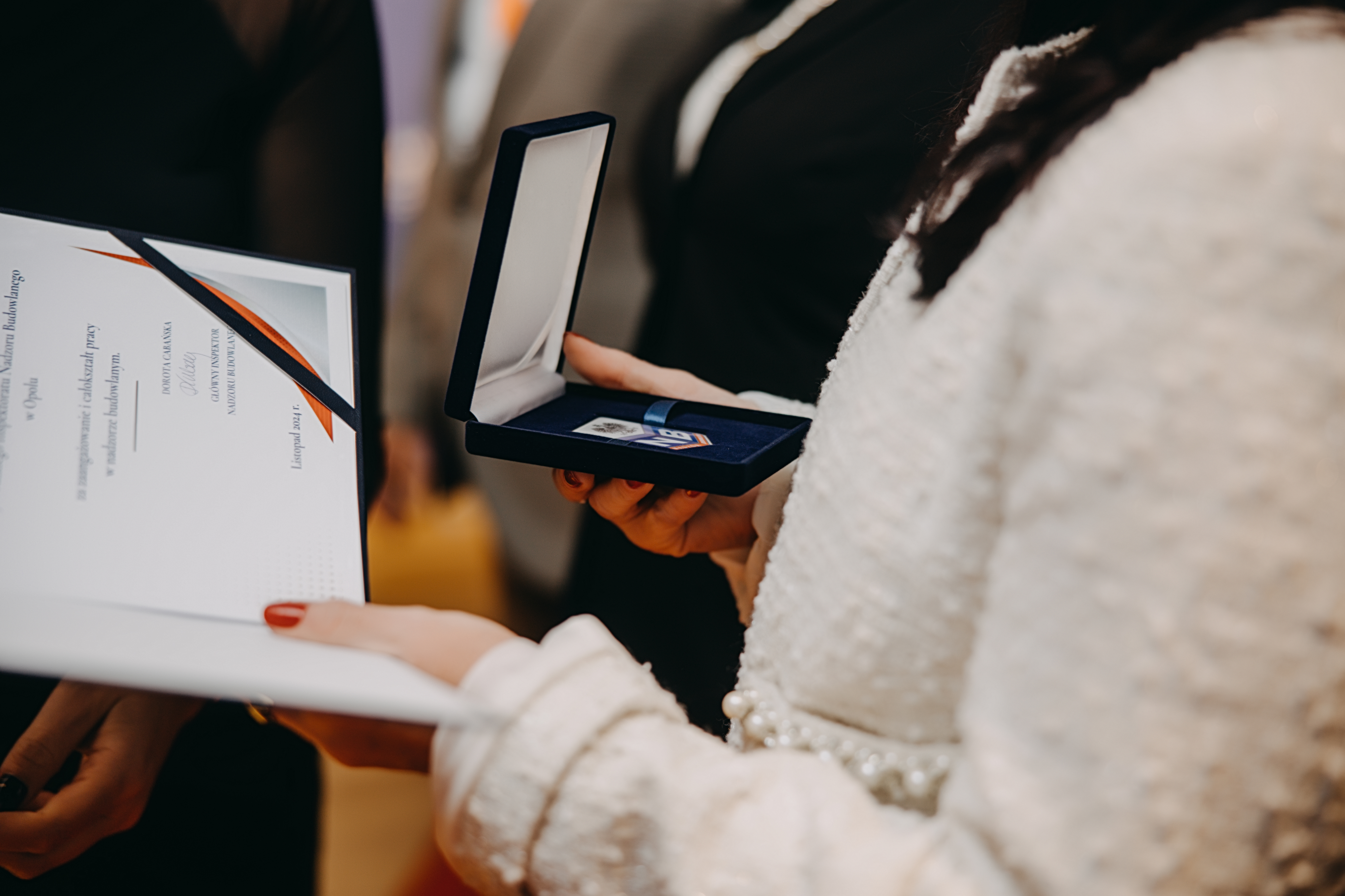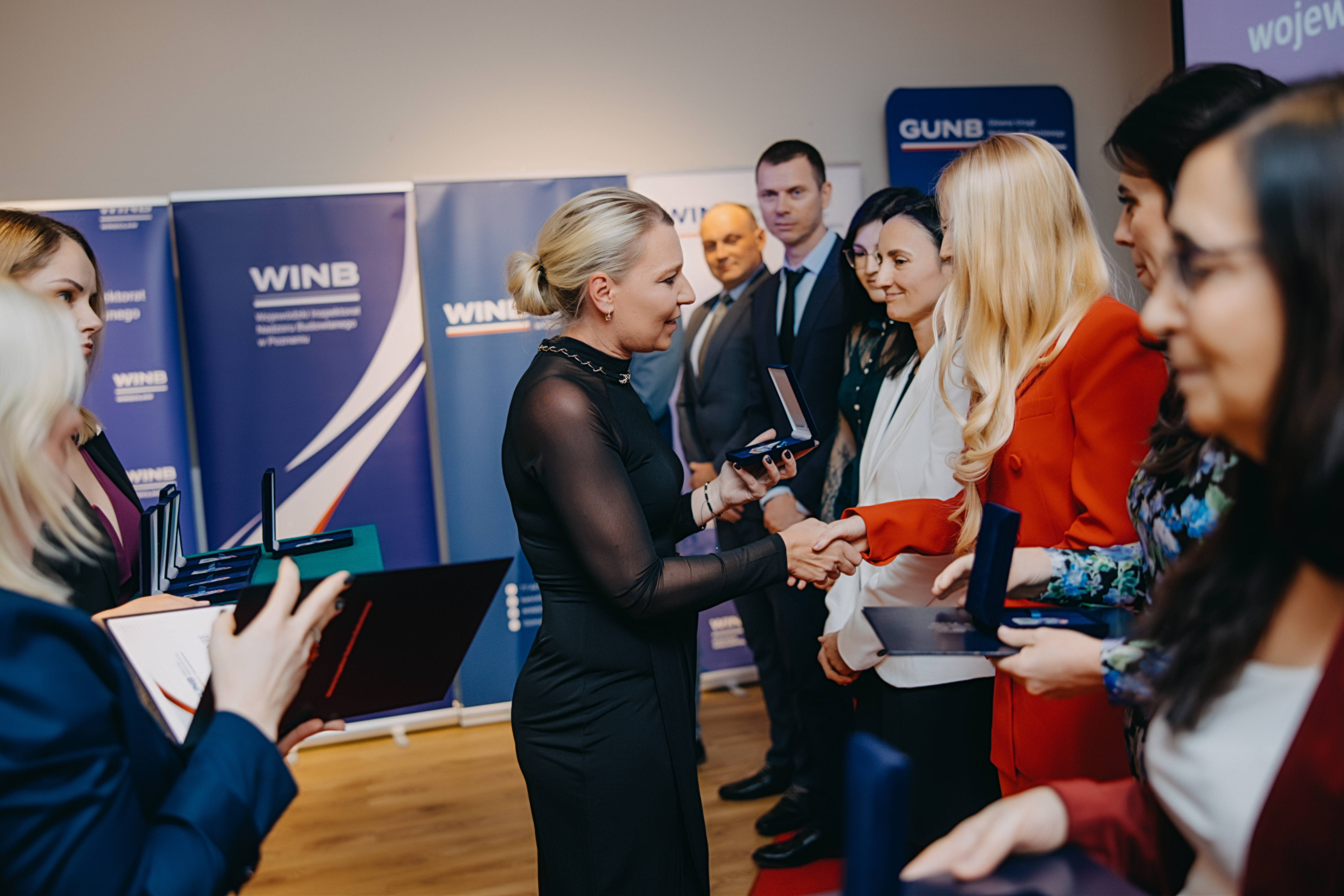 Wyróżnienia od Szefowej GUNB otrzymali najbardziej zasłużeni pracownicy nadzoru budowlanego, w tym z długoletnim stażem, w uznaniu za zaangażowanie i całokształt pracy w NB. Dorota Cabańska podziękowała im za umacnianie struktur nadzoru budowlanego i osobiste zaangażowanie w pracę.
