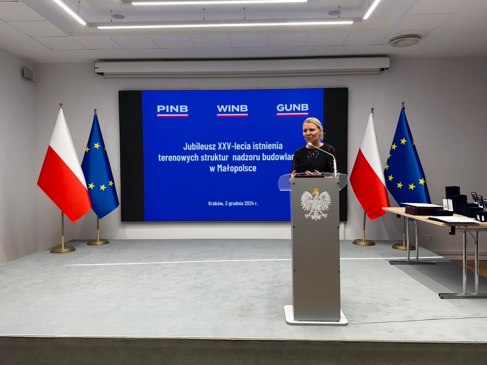 Dorota Cabańska, Główny Inspektor Nadzoru Budowlanego, wzięła udział w jubileuszu 25-lecia powstania terenowych jednostek nadzoru budowlanego w Małopolsce. Najbardziej zasłużeni pracownicy otrzymali odznaczenia państwowe, odznaki nadzoru budowlanego, a także medale okolicznościowe. Medalem okolicznościowym uhonorowana została także Szefowa GUNB.