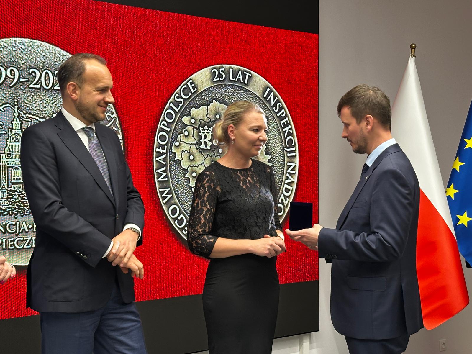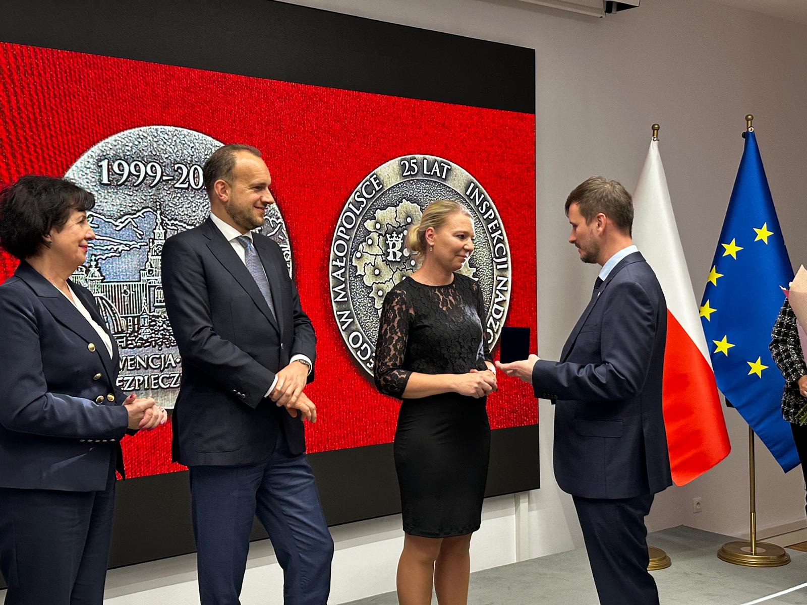 Podczas uroczystości Dorota Cabańska odebrała z rąk Andrzeja Macałki Małopolskiego Wojewódzkiego Inspektora Nadzoru Budowlanego medal okolicznościowy z okazji 25-lecia inspekcji nadzoru budowlanego w Małopolsce. Na medalu widnieją najważniejsze wartości nadzoru budowlanego: prewencja, kontrola i bezpieczeństwo.