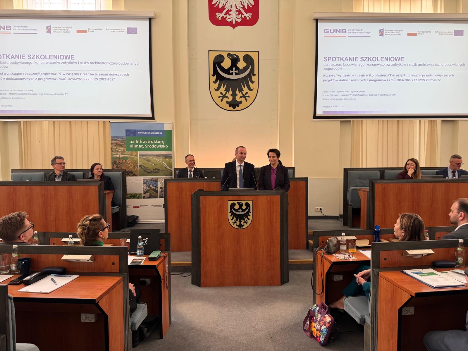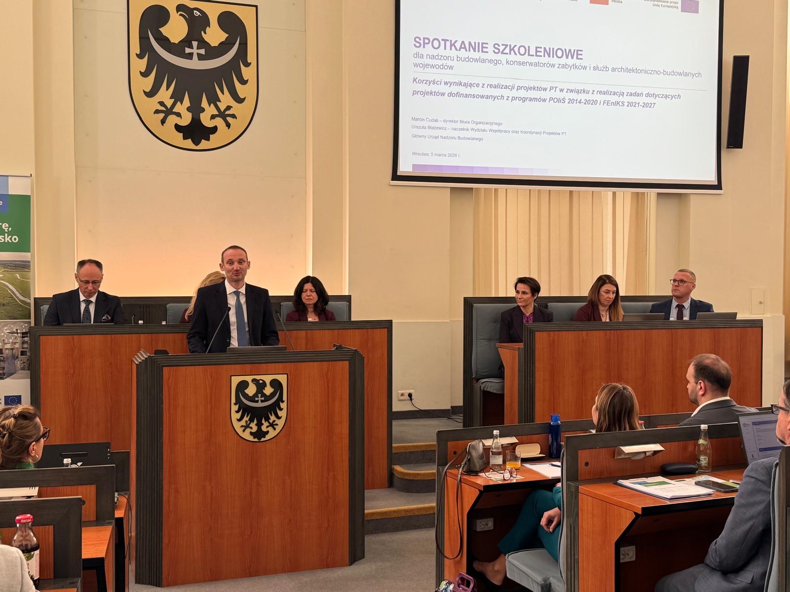- Pierwszego dnia Marcin Cudak i Urszula Błażewicz omówili korzyści z realizacji projektów Pomocy Technicznej (PT) dla nadzoru budowlanego.