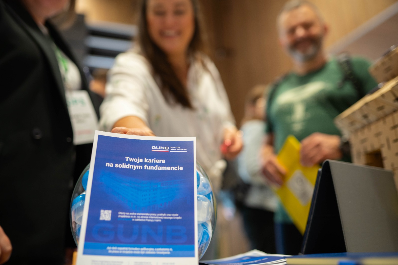 Na stoisku GUNB odwiedzający mogli porozmawiać z przedstawicielami zespołu HR i dowiedzieć się, jak wygląda praca w naszym urzędzie. Uczestnicy mieli również możliwość zapoznania się z aktualnymi ofertami pracy i ścieżkami rozwoju zawodowego. Dodatkowo mogli poznać pakiet benefitów i form wsparcia oferowanych pracownikom.