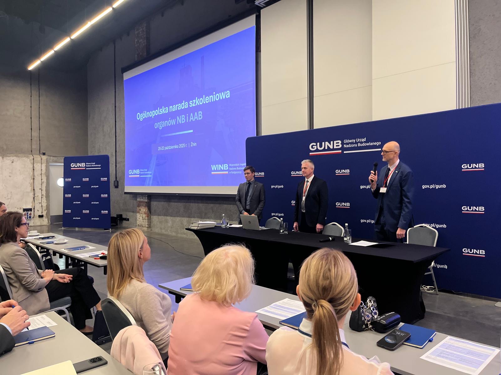 Naradę szkoleniową otworzyli: Filip Prusik-Serbinowski, Zastępca Głównego Inspektora Nadzoru Budowlanego, Michał Widelski, Dyrektor Generalny GUNB i Marek Chorzępa, Kujawsko-Pomorski Wojewódzki Inspektor Nadzoru Budowlanego.