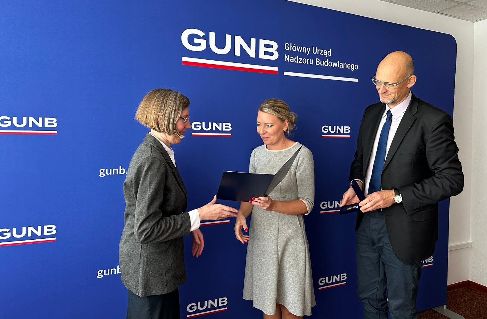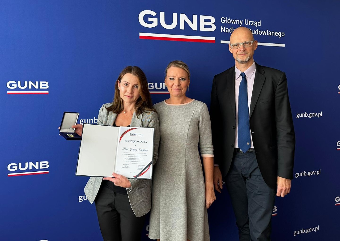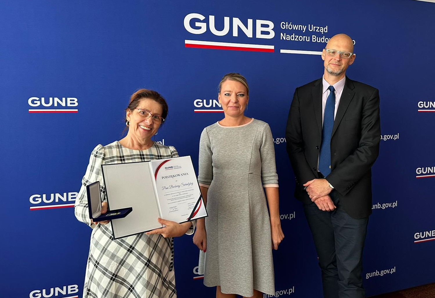 Dorota Cabańska, GINB i Michał Widelski, Dyrektor Generalny GUNB wręczyli wyróżnienia Głównego Inspektora Nadzoru Budowlanego. Uhonorowali pracowników za wieloletnią i oddaną pracę w urzędzie.