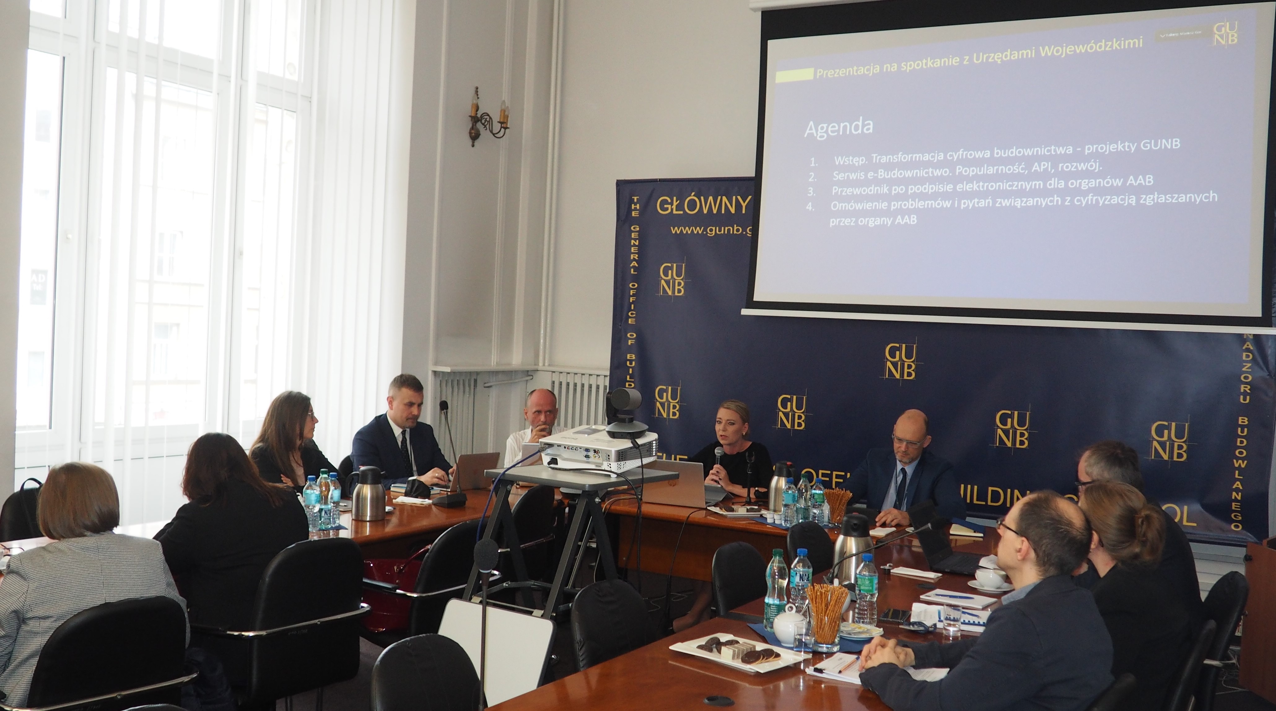 12 października br. w siedzibie Głównego Urzędu Nadzoru Budowlanego odbyło się spotkanie podsumowujące cyfryzację procesu budowlanego w organach administracji architektoniczno-budowlanej. W posiedzeniu uczestniczyli przedstawiciele GUNB oraz dyrektorzy administracji architektoniczno-budowlanej w Urzędach Wojewódzkich.