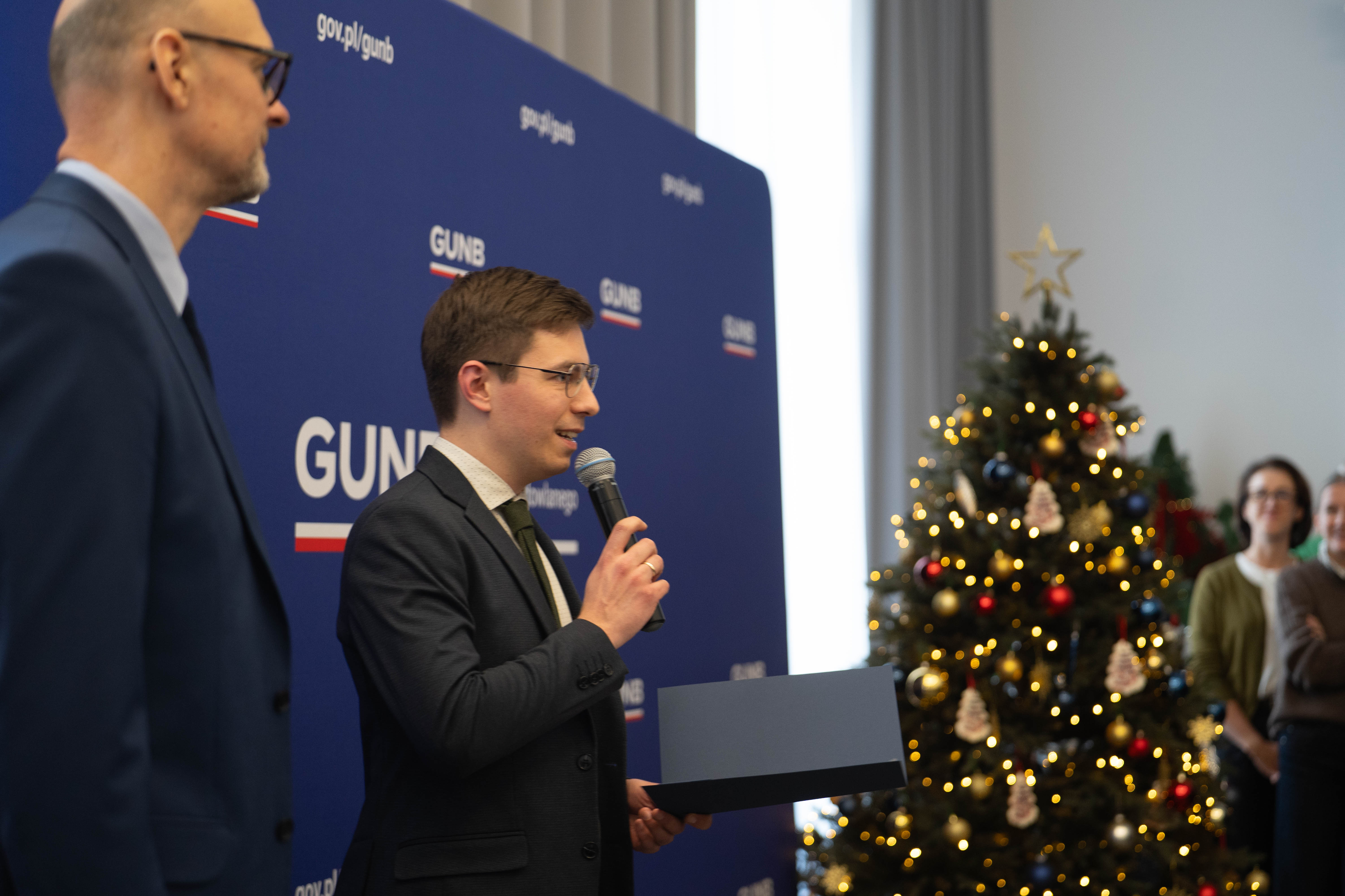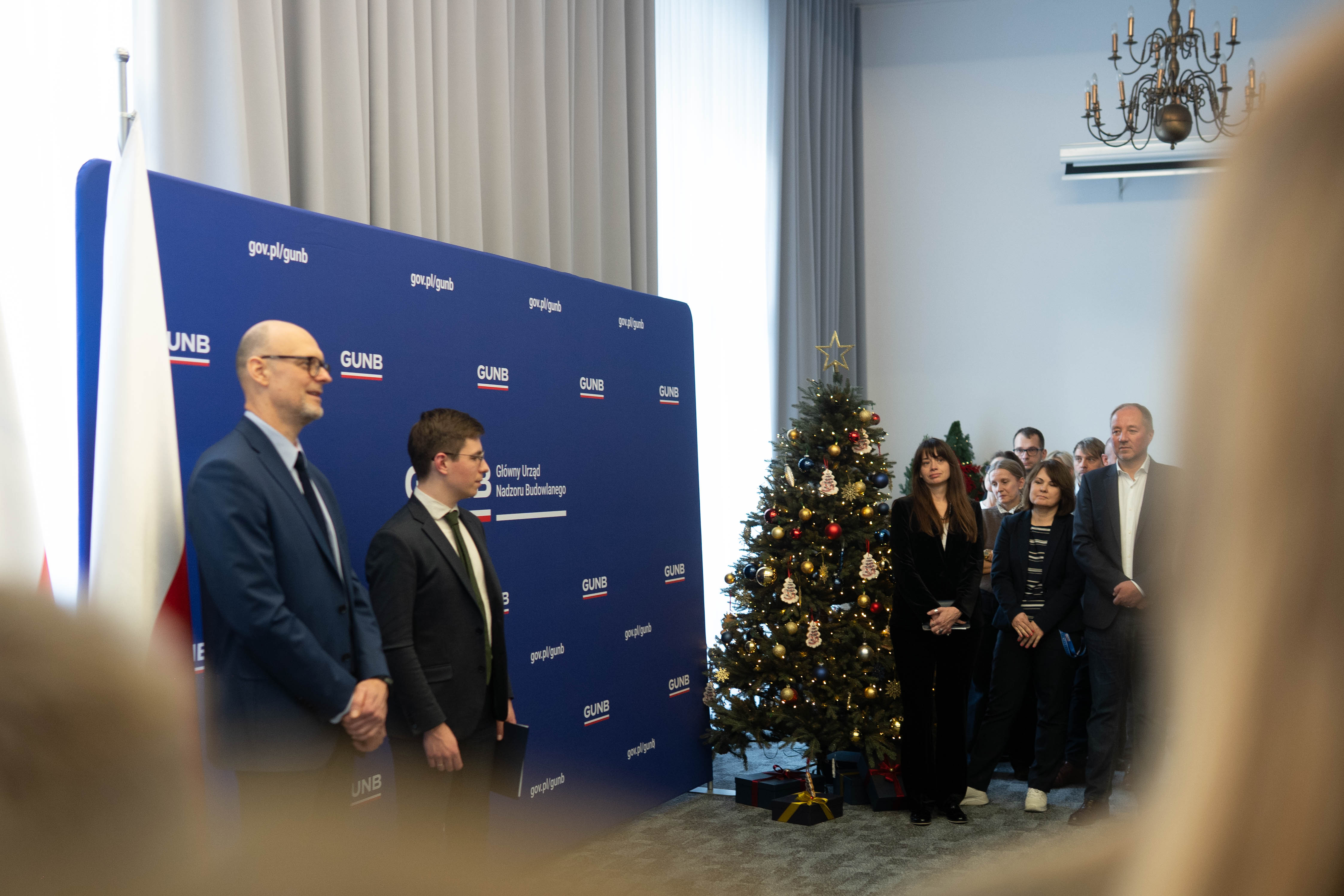 Z okazji zbliżających się świąt Bożego Narodzenia, odbyło się uroczyste spotkanie całego zespołu GUNB. W wydarzeniu uczestniczyli Filip Prusik-Serbinowski, Zastępca Głównego Inspektora Nadzoru Budowlanego, i Michał Widelski, Dyrektor Generalny GUNB. Była to okazja do krótkiego podsumowania mijającego roku i do złożenia świątecznych oraz noworocznych życzeń.