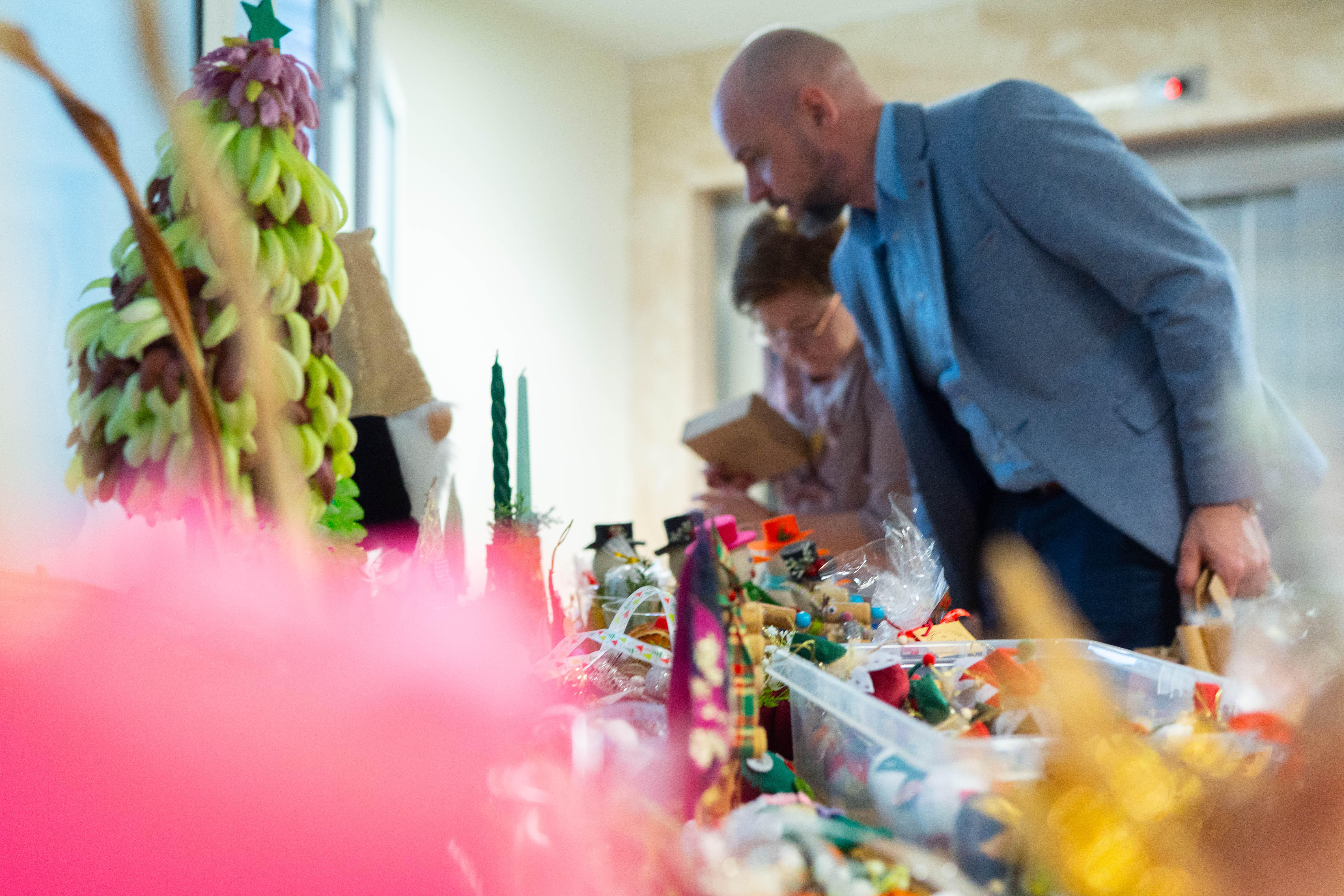 Tradycyjnie w grudniu w GUNB zorganizowaliśmy świąteczny kiermasz dobroczynny. Swoje stoiska przygotowali uczestnicy Warsztatów Terapii Zajęciowych. Wśród prac można było znaleźć m.in. ręcznie wykonane ozdoby świąteczne, ceramikę, kartki, stroiki, świece oraz obrazy.