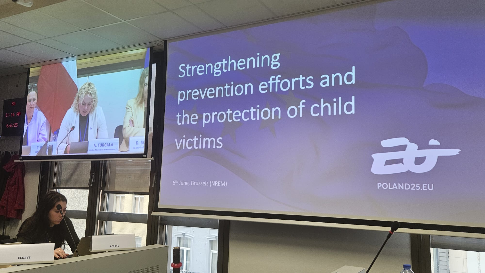 W dniach 5-6 czerwca 2025 r. w Brukseli odbyło się spotkanie Unijnej Sieci Krajowych Sprawozdawców i Mechanizmów Równoważnych ds. Handlu Ludźmi (NREM), które tym razem skoncentrowane było na problematyce handlu dziećmi, zwłaszcza w kontekście migracji oraz rosnących zagrożeń w środowisku cyfrowym. Spotkanie miało szczególne znaczenie z uwagi na fakt, że Polska objęła Prezydencję w Radzie Unii Europejskiej w pierwszej połowie 2025 r. W związku z tym polscy przedstawiciele współprzewodniczyli obradom. Specjalnie na tę okoliczność Pan Czesław Mroczek, Sekretarz Stanu w MSWiA, w przygotowanej w formie wideo wiadomości przywitał wszystkich uczestników spotkania i zapewnił o istotności tematu dla działań resortu.