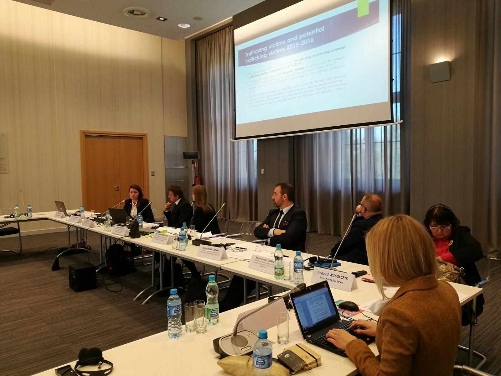 Pani Agata Kobylińska z DAiPM MSWiA przedstawiła funkcjonujący w ramach krajowego mechanizmu referencyjnego "Algorytm identyfikacji i postępowania dla funkcjonariuszy Policji i Straży Granicznej w przypadku małoletniej ofiary handlu ludźmi", którego celem jest niezwłoczne zabezpieczenie potrzeb dzieci - ofiar handlu ludźmi. Pani Marcelina Mroczkowska z DAiPM MSWiA omówiła z kolei raport "Najlepsze praktyki i wyzwania systemu identyfikacji małoletnich ofiar handlu ludźmi w Polsce", sporządzony przez Departament Analiz i Polityki Migracyjnej MSWiA. Dokument ten był konsultowany z Grupą Ekspertów ds. Przeciwdziałania Handlowi Ludźmi Rady Europy (GRETA).