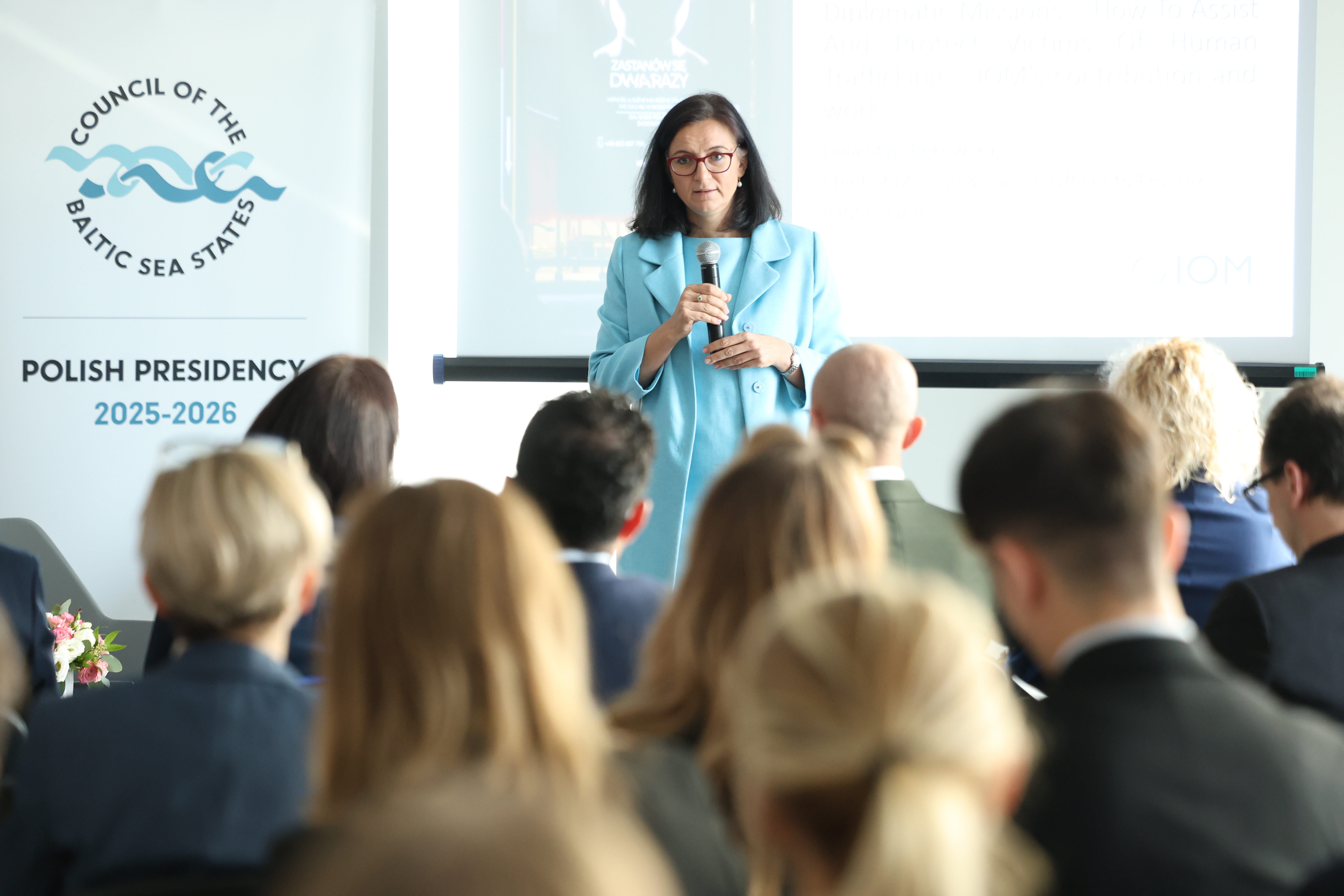 Wydarzenie zorganizowane przez Departament Porządku Publicznego MSWiA we współpracy z Sekretariatem RPMB oraz IOM Polska zgromadziło blisko 40 uczestników, w tym przedstawicieli placówek dyplomatycznych akredytowanych w Polsce (m.in. Kolumbię, Argentynę, Kubę, Panamę, Ukrainę, Szwecję, Danię, Islandię, Niemcy, Filipiny, Łotwę, Litwę, Turcję, Bułgarię i Mołdawię) oraz kluczowych instytucji krajowych zaangażowanych w przeciwdziałanie handlowi ludźmi. Głównym celem spotkania było wzmocnienie kompetencji dyplomatów w zakresie identyfikacji, wspierania i ochrony ofiar tego przestępstwa.