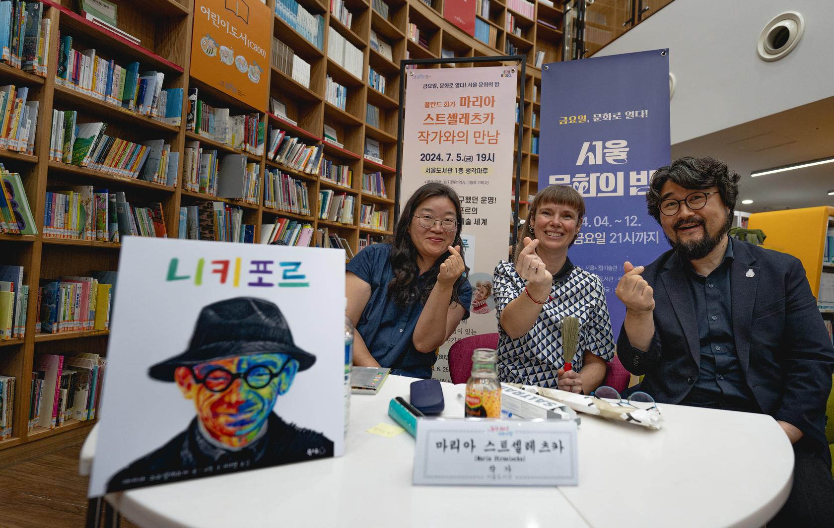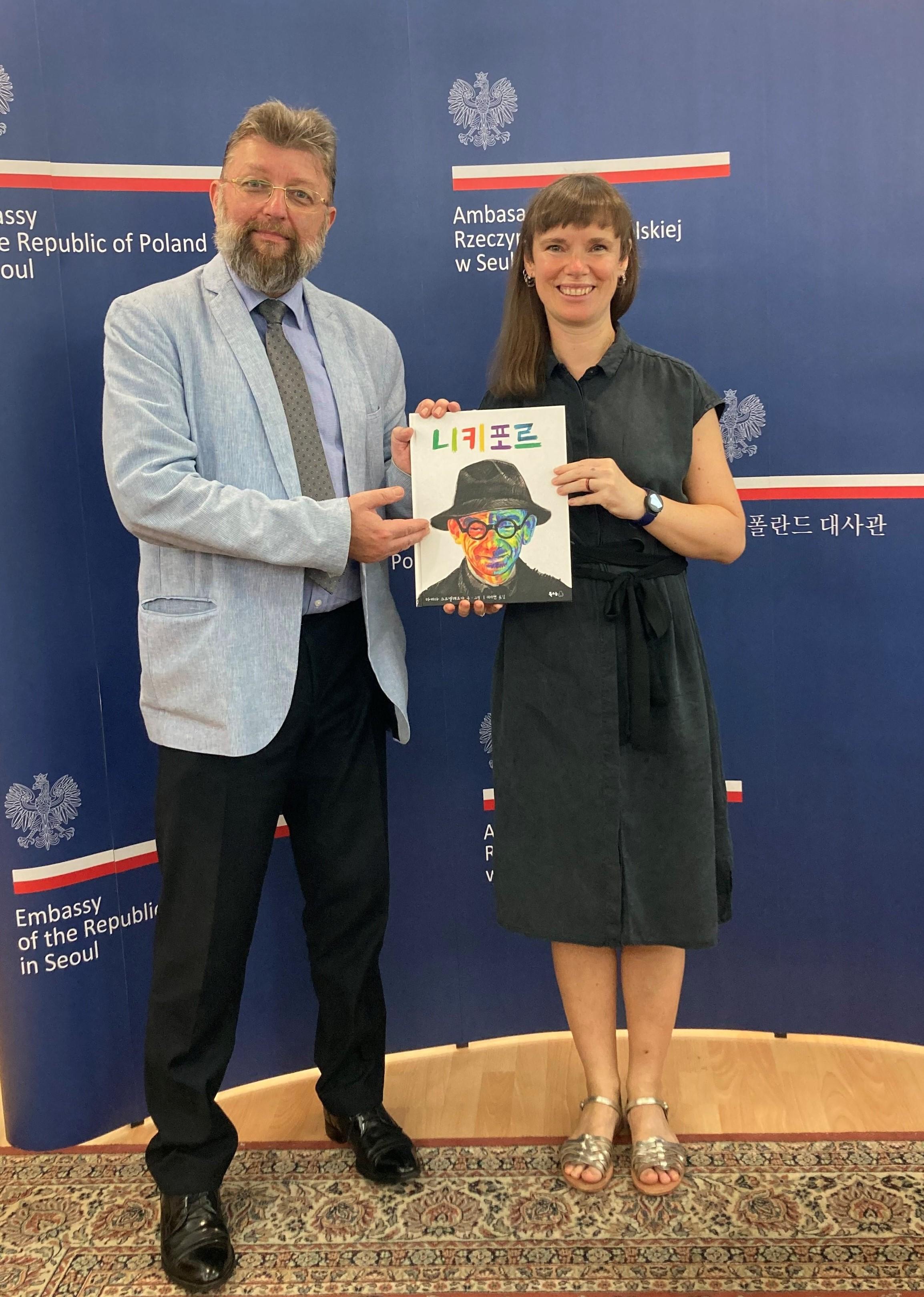 지난 7월 1일, 피오트르 오스타셰프스키 주한 폴란드 대사는 “니키포르” 한국어판 출간을 기념해 방한한 작가 마리아 스트젤레츠카를 만났습니다. 작가는 7월 3일, '이루리북스' 서점에서 북극곰 출판사가 주최한 행사에 참석하여 참가자들과 책에 대한 생각을 나누고 많은 한국 독자들과 만남을 가졌습니다. 이 행사에는 피오트르 오스타셰프스키 대사와 카타르지나 토마셰프스카 영사도 함께 참석했습니다.