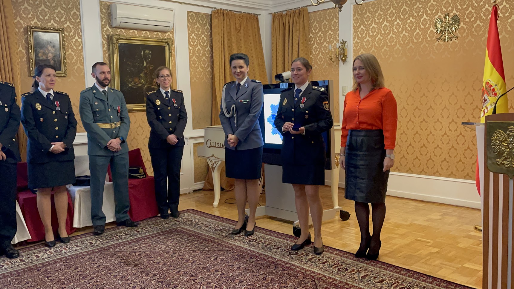 20 listopada w Ambasadzie RP w Madrycie odbyła się wyjątkowa uroczystość. Ambasador Anna Sroka wraz z oficer łącznikową Policji, mł. insp. Karoliną Gawlicką-Bąk wręczyły funkcjonariuszom hiszpańskiej Policji Narodowej i Gwardii Cywilnej Brązowe Medale za Zasługi Dla Policji. Odznaczenia otrzymało siedmiu funkcjonariuszy, którzy swoją wyjątkową postawą i ponadprzeciętnym zaangażowaniem, zasłużyli się w sposób szczególny w dziedzinie rozwijania i zacieśniania pozaoperacyjnej współpracy międzynarodowej oraz zwalczania zorganizowanych grup przestępczych, w ramach bilateralnej współpracy z polską Policją oraz Centralnym Biurem Śledczym Policji. Osoby odznaczone reprezentowały następujące jednostki hiszpańskich służb policyjnych: Unidad de Drogas y Crimen Organizado (UDYCO) de la Policía Nacional, Departamento Cooperación Internacional de la Policía Nacional i Órgano de Coordinación contra el Narcotráfico SUR de la Guardia Civil. W ceremonii towarzyszyli im przełożeni, współpracownicy i rodziny.