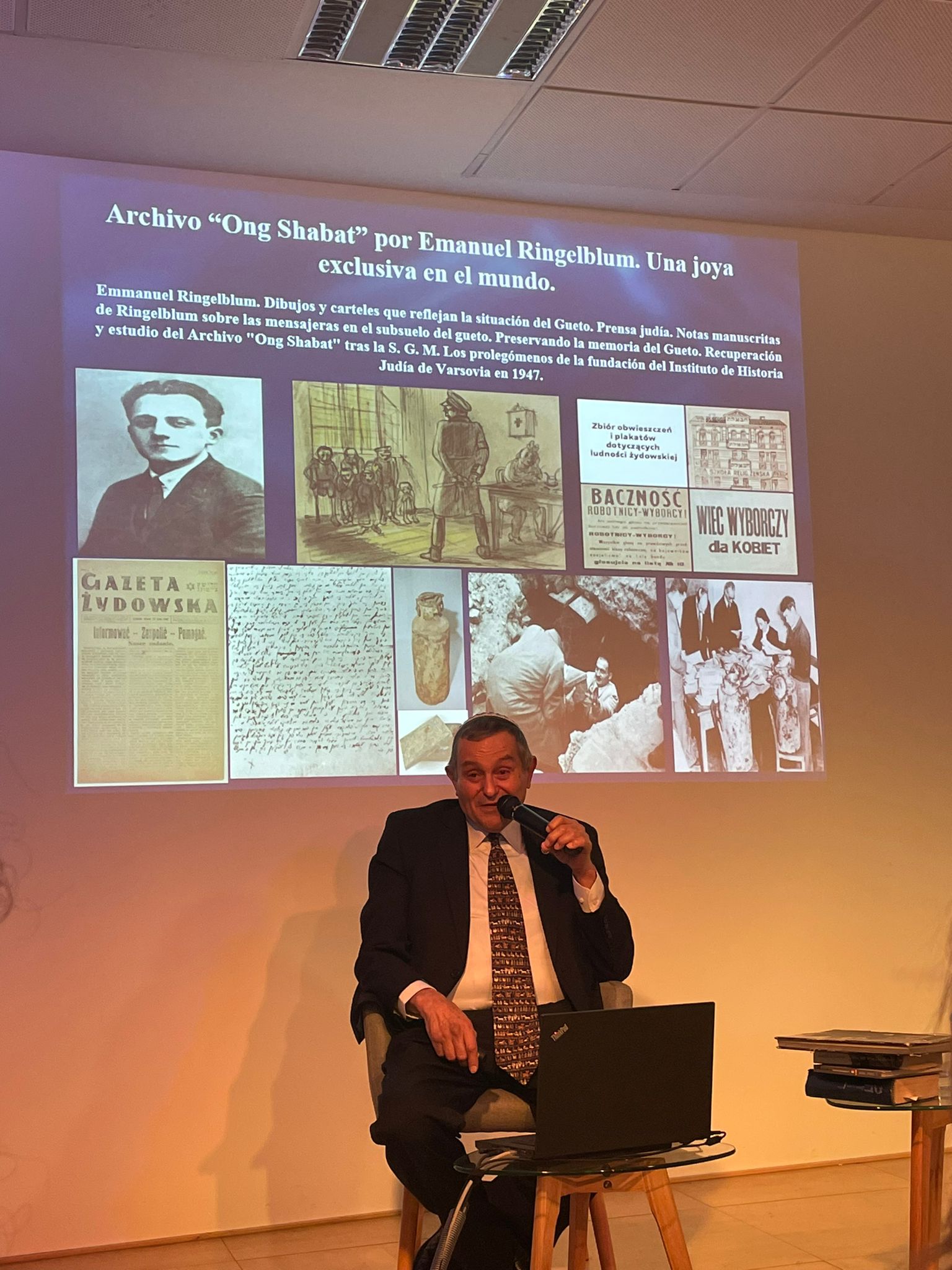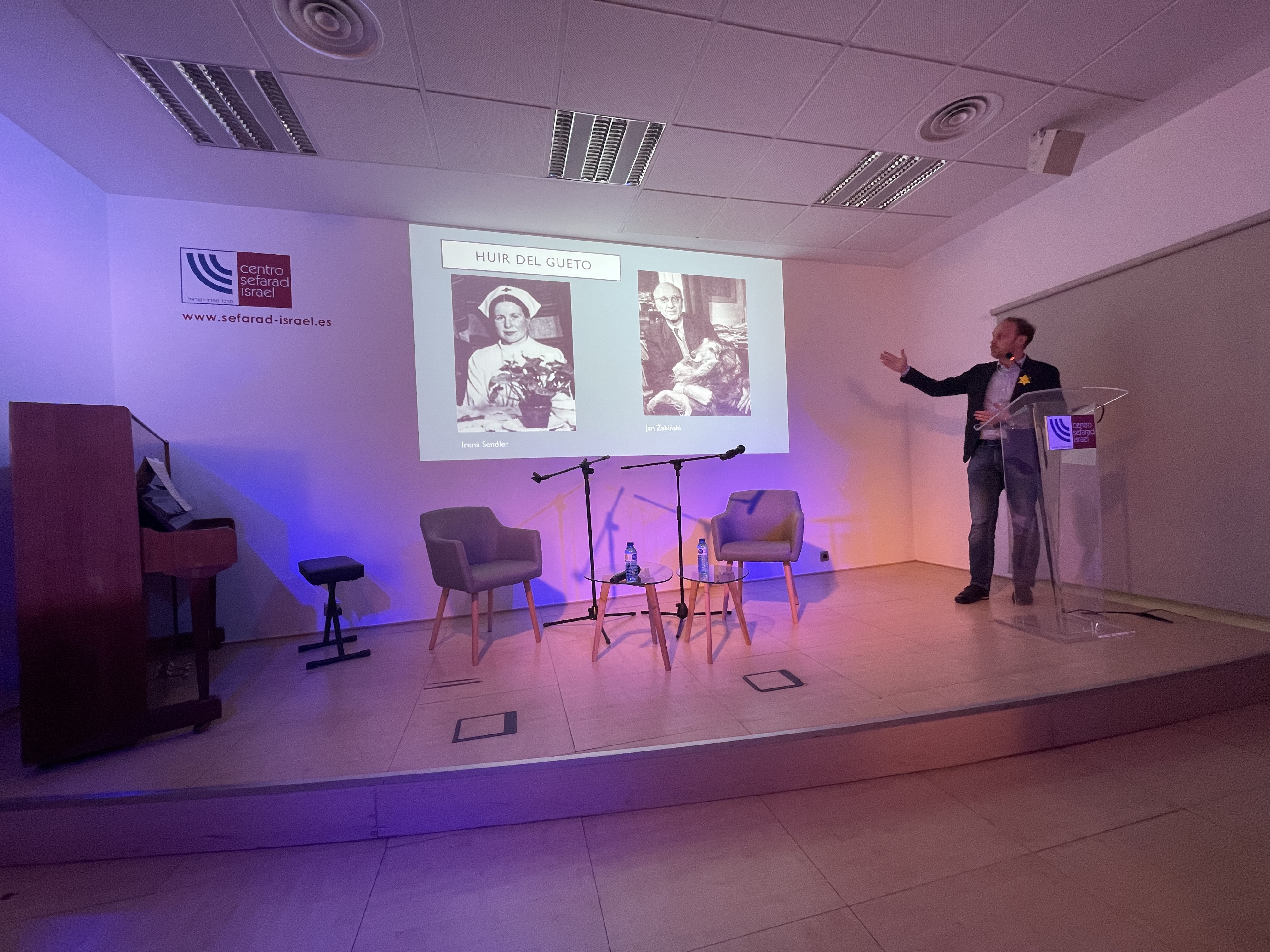 Od 10 marca do 19 kwietnia w Centro Sefarad-Israel w Madrycie prezentowano wystawę „Przesiedleni. 14 historii z warszawskiego getta”. Wystawa została pozyskana od Żydowskiego Instytutu Historycznego, a jej treść zawierała m.in. informacje dotyczące Powstania w Getcie Warszawskim oraz współczesnego zaangażowania Polaków w zachowanie pamięci o polskich Żydach. 12 kwietnia Polsko-Hiszpańskie Stowarzyszenie Forum, we współpracy z Centro Sefarad-Israel oraz Ambasadą przygotowało i przedstawiło performans oparty na historiach osób, które przeżyły powstanie w Getcie Warszawskim (m.in. Marka Edelmana), połączony z wykonaniem trzech pieśni żydowskich przez polskiego wokalistę. Po performansie odbył się wykład polskiego historyka, Ernesta Kowalczyka nt. historii Żydów polskich (od średniowiecza do współczesności) wprowadzający do wystawy „Przesiedleni. 14 historii z warszawskiego getta”. 18 kwietnia Centro Sefarad- Israel gościło, zorganizowaną przez Ambasadę konferencję pt. „Zdrowie i medycyna w żydowskich gettach okupowanej Polski”, którą poprowadziło dwoje zasłużonych profesorów: Rosa Ríos Cortes i Esteban González López z Wydziału Medycyny Uniwersytetu Autónoma w Madrycie. Dzień później, także w Centro Sefarad odbył się wykład pt. „Życie w getcie warszawskim na podstawie Archiwum Ringelbluma” oraz pokaz krótkometrażowego filmu animowanego „Zdążyć przed Panem Bogiem” wyprodukowanego przez Muzeum Polin. Wykład poprowadził profesor Ángel L. Encinas Moral z Wydziału Filologicznego Uniwersytetu Complutense w Madrycie. W rocznicę wybuchu Powstania, 19 kwietnia, Ambasador Anna Sroka wraz z Ambasador Izraela Rodiką Radian-Gordon przyłączyła się do akcji muzeum Polin i Fundacji ELNET „żonkile”.