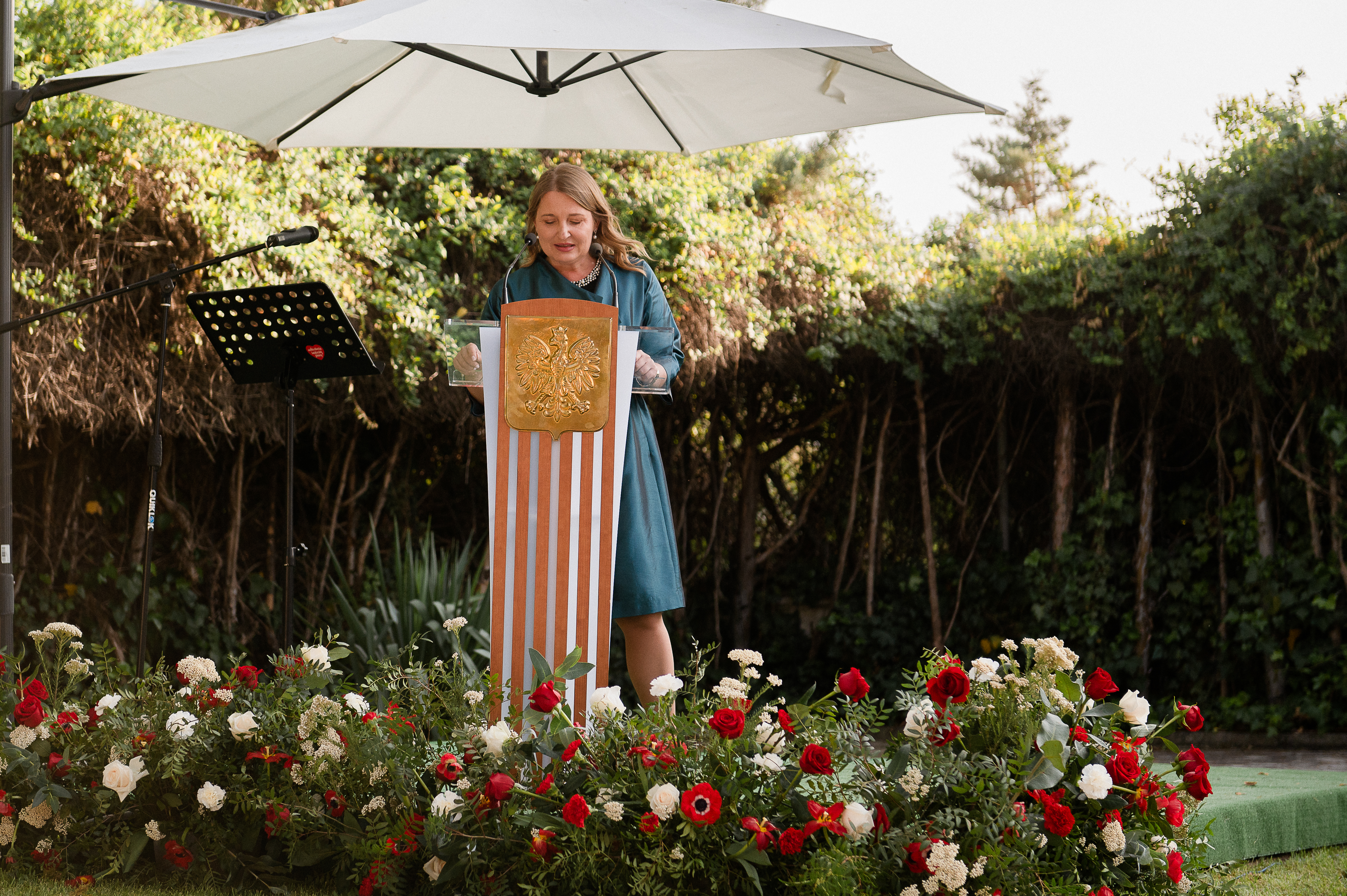 Następnie w ogrodach Ambasady odbyła się uroczystość z okazji święta narodowego Konstytucji 3 maja. Ambasador RP Anna Sroka przybliżyła gościom historię przyjęcia Konstytucji oraz wskazała na jej dziejową rolę oraz znaczenie dla współczesności. Podkreśliła również, że historyczne dziedzictwo Rzeczpospolitej Obojga Narodów powinno stanowić inspirację dla dzisiejszej współpracy w ramach UE, szczególnie w obliczu rosyjskiej agresji na Ukrainę.