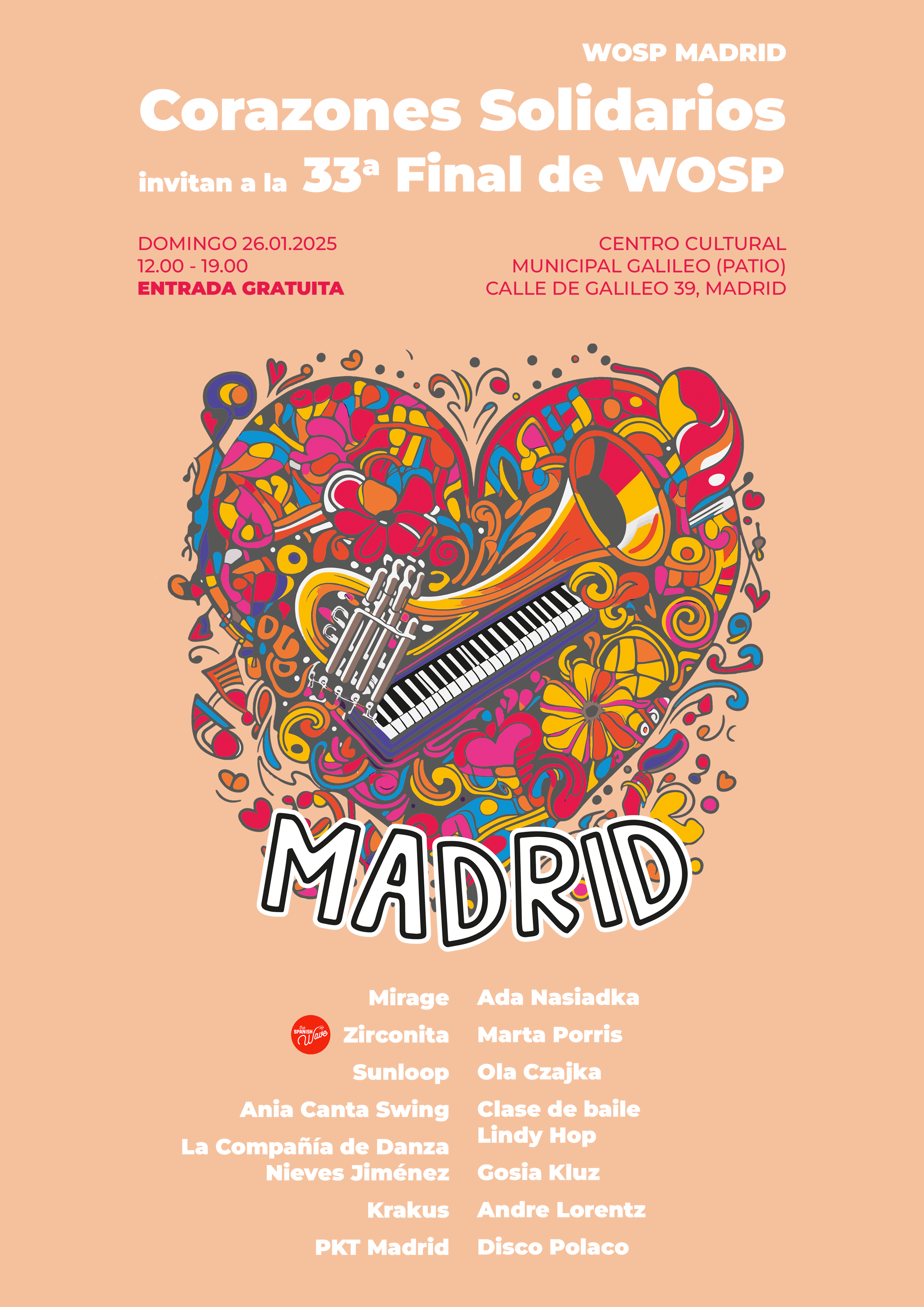 Społeczność polska w Madrycie włącza się w akcję charytatywną „Wielka Orkiestra Świątecznej Pomocy” w celu wsparcia zbiórki funduszy na zakup sprzętu na oddziały onkologii i hematologii dziecięcej.