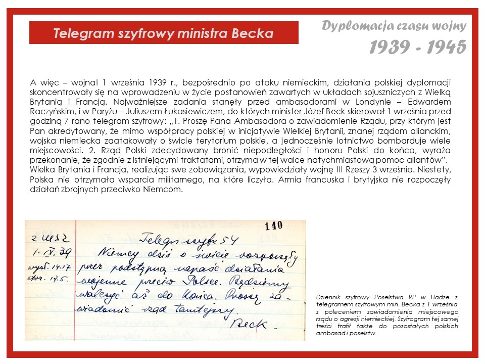 Z okazji 75. rocznicy zakończenia II wojny światowej zachęcamy Państwa do zapoznania się z notkami historycznymi dokumentującymi rolę polskiej dyplomacji podczas wojny i bezpośrednio po jej zakończeniu. Do tekstów dołączone są mało znane zdjęcia i dokumenty pochodzące z archiwów polskich lub zagranicznych.