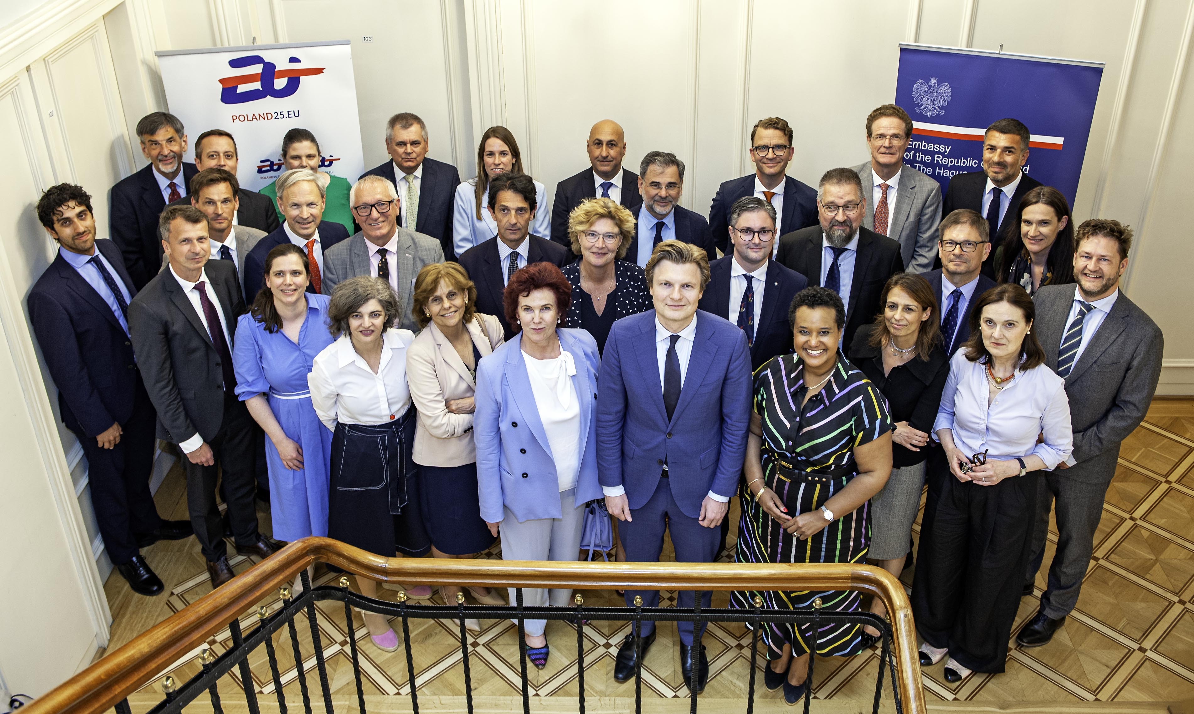 Spotkanie z Ministrem Obrony NL Rubenem Brekelmansem zakończyło cykl spotkań w formacie EU HoMs organizowanym w Ambasadzie RP w Hadze. Stanowiło ono okazję do pogłębionej wymiany poglądów na temat kluczowych kwestii związanych z bezpieczeństwem europejskim i globalnym. W centrum rozmów znalazły się przygotowania do nadchodzącego szczytu NATO w Hadze, w tym oczekiwania państw członkowskich wobec przyszłego kierunku strategicznego Sojuszu oraz jego postawy obronnej. Szczególną uwagę poświęcono także wzmocnieniu współpracy pomiędzy Unią Europejską a NATO w kontekście narastających zagrożeń hybrydowych oraz niestabilności geopolitycznej.