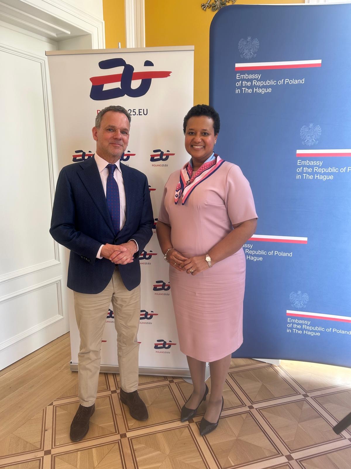 W ramach Polskiej prezydencji w Radzie UE dnia 21 marca ambasador RP w Niderlandach zorganizowała spotkanie w formacie HoMs z Ministrem Spraw Zagranicznych Holandii, Casparem Veldkampem.
