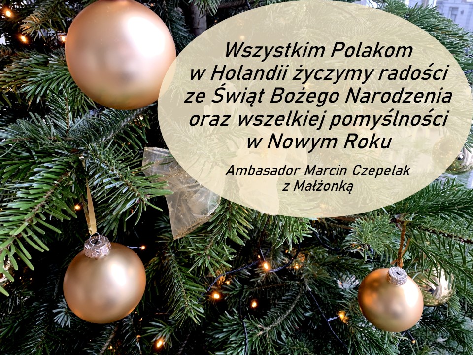 Wszystkim Polakom w Holandii życzymy radości ze Świąt Bożego Narodzenia oraz wszelkiej pomyślności w Nowym Roku Ambasador Marcin Czepelak z Małżonką