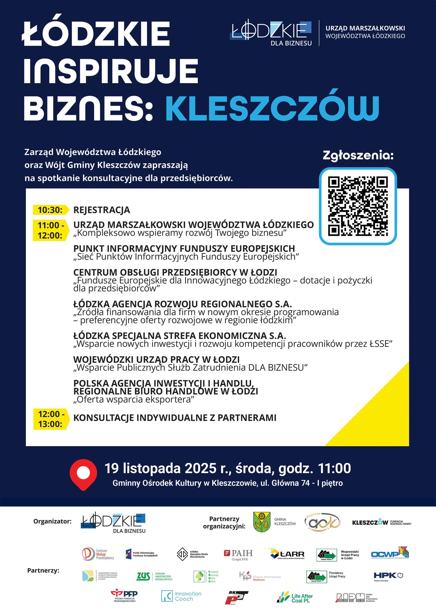 Po części prezentacyjnej uczestnicy będą mieli możliwość skorzystania z indywidualnych konsultacji z partnerami wydarzenia. To okazja, aby porozmawiać o konkretnych pomysłach, potrzebach i możliwościach rozwoju własnego biznesu.
