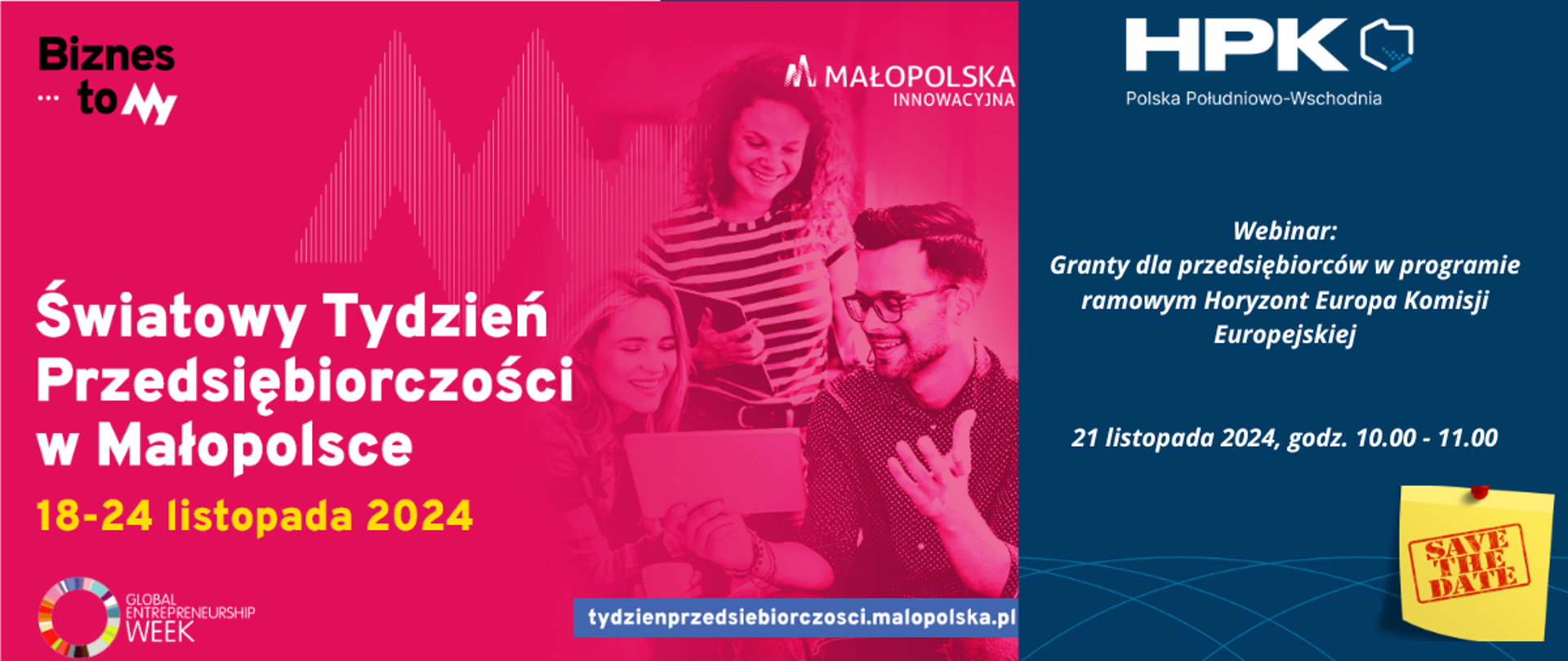 Szkolenie to zostanie poprowadzone w ramach Światowego Tygodnia Przedsiębiorczości w Małopolsce: https://tydzienprzedsiebiorczosci.malopolska.pl/