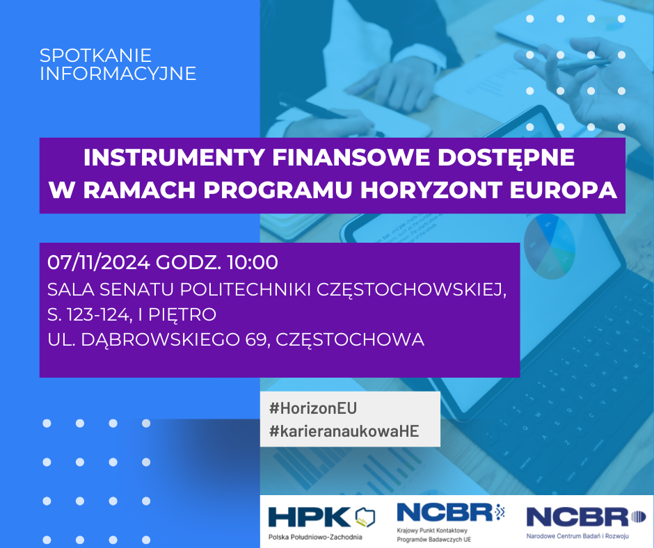 Spotkanie informacyjne: Instrumenty finansowe dostępne w ramach programu Horyzont Europa