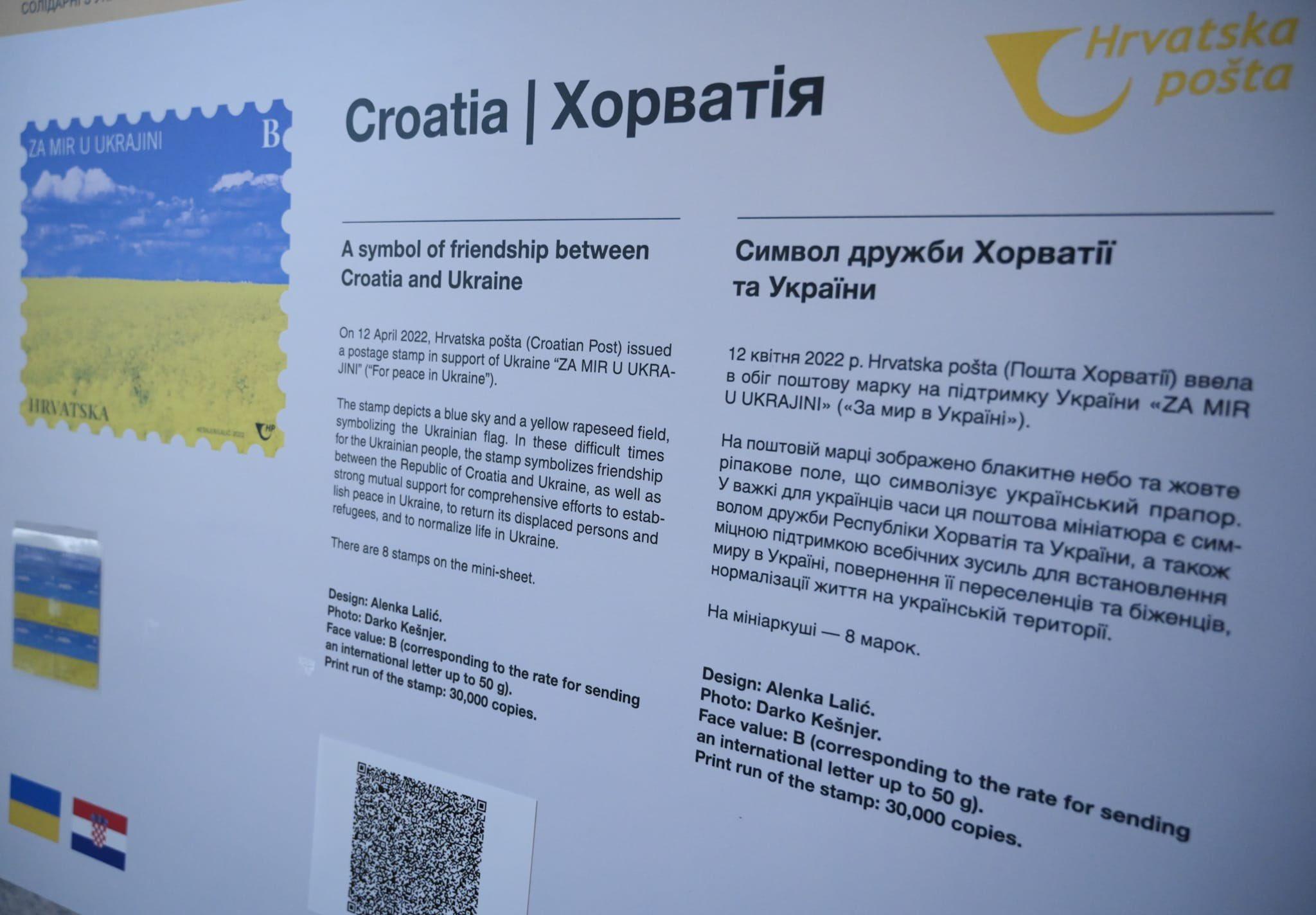 Tema izložbe su prigodne poštanske marke izdane u nekoliko zemalja (uključujući Poljsku) koje podržavaju Ukrajinu u obrani od ruske agresije. Događaj je organiziralo Ministarstvo vanjskih i europskih poslova Republike Hrvatske kao popratni događaj godišnjeg susreta voditelja diplomatskih misija i konzularnih ureda Republike Hrvatske. Izložba je već gostovala u Kijevu i Beču, a nakon Zagreba će biti postavljena u Varšavi.