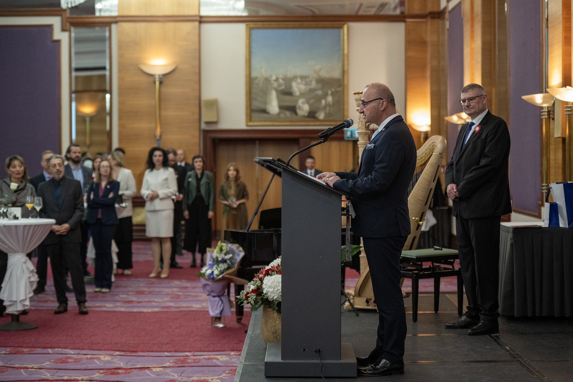 U dijelu govora na materinskom jeziku, upućenom članovima poljske zajednice u Hrvatskoj i poljskim državljanima koji ovdje borave, veleposlanik se osvrnuo na Dan poljske dijaspore i Poljaka u inozemstvu, koji se slavi neposredno prije Dana Ustava 3. svibnja. Tom je prilikom zahvalio poljskim gostima na njihovoj predanosti „ka očuvanju nacionalnog identiteta i širenju znanja o poljskoj znanosti, kulturi i gospodarskom potencijalu među našim hrvatskim prijateljima“.