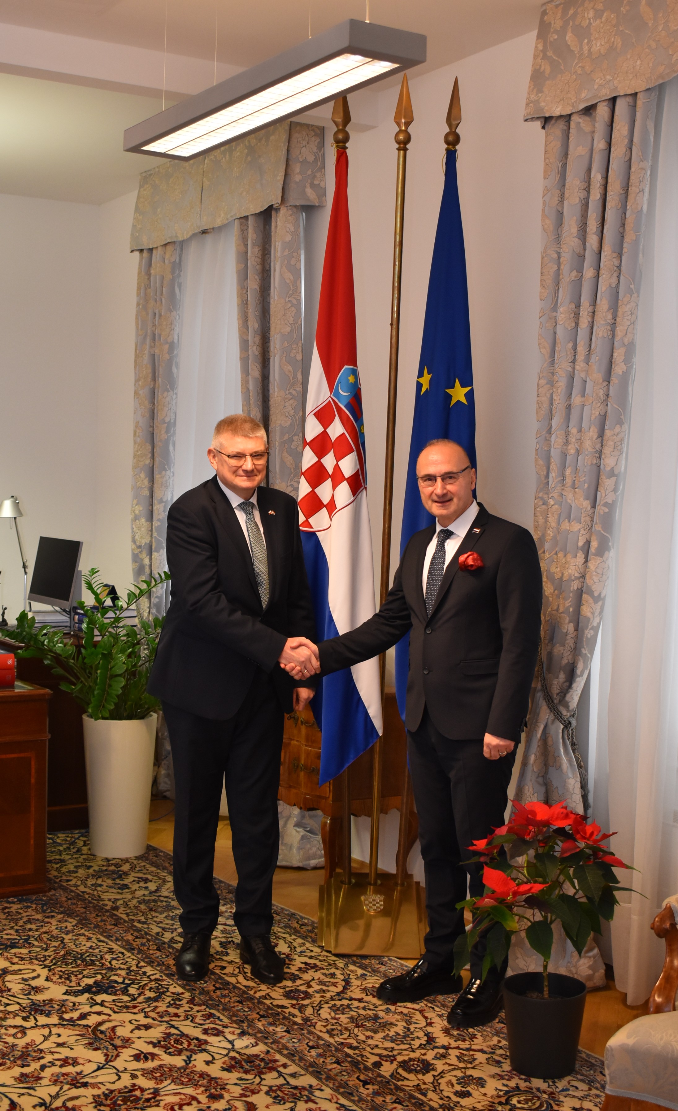 Dana 20. prosinca ove godine veleposlanik Paweł Czerwiński bio je u kurtoaznom posjetu ministru vanjskih i europskih poslova Republike Hrvatske gospodinu Gordanu Grliću Radmanu. Tijekom susreta istaknuto je približavanje stajališta obiju zemalja o ključnim pitanjima te vrlo dobro stanje bilateralnih odnosa, što se između ostalog odražava u učestalim kontaktima na visokoj razini. Sugovornici su se složili oko potrebe daljnjeg jačanja poljsko-hrvatske suradnje, posebice u aktualnom, teškom međunarodnom okruženju.