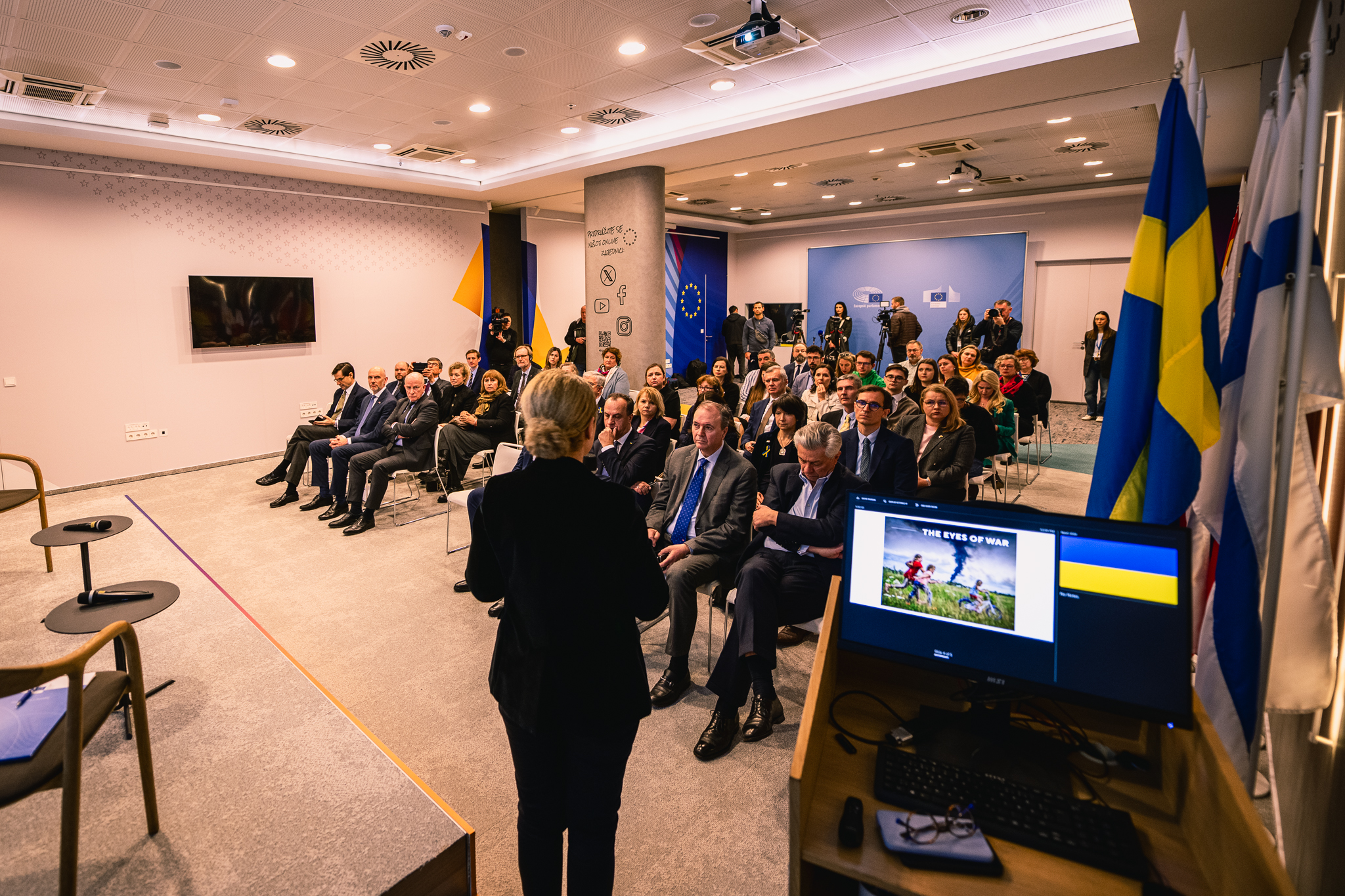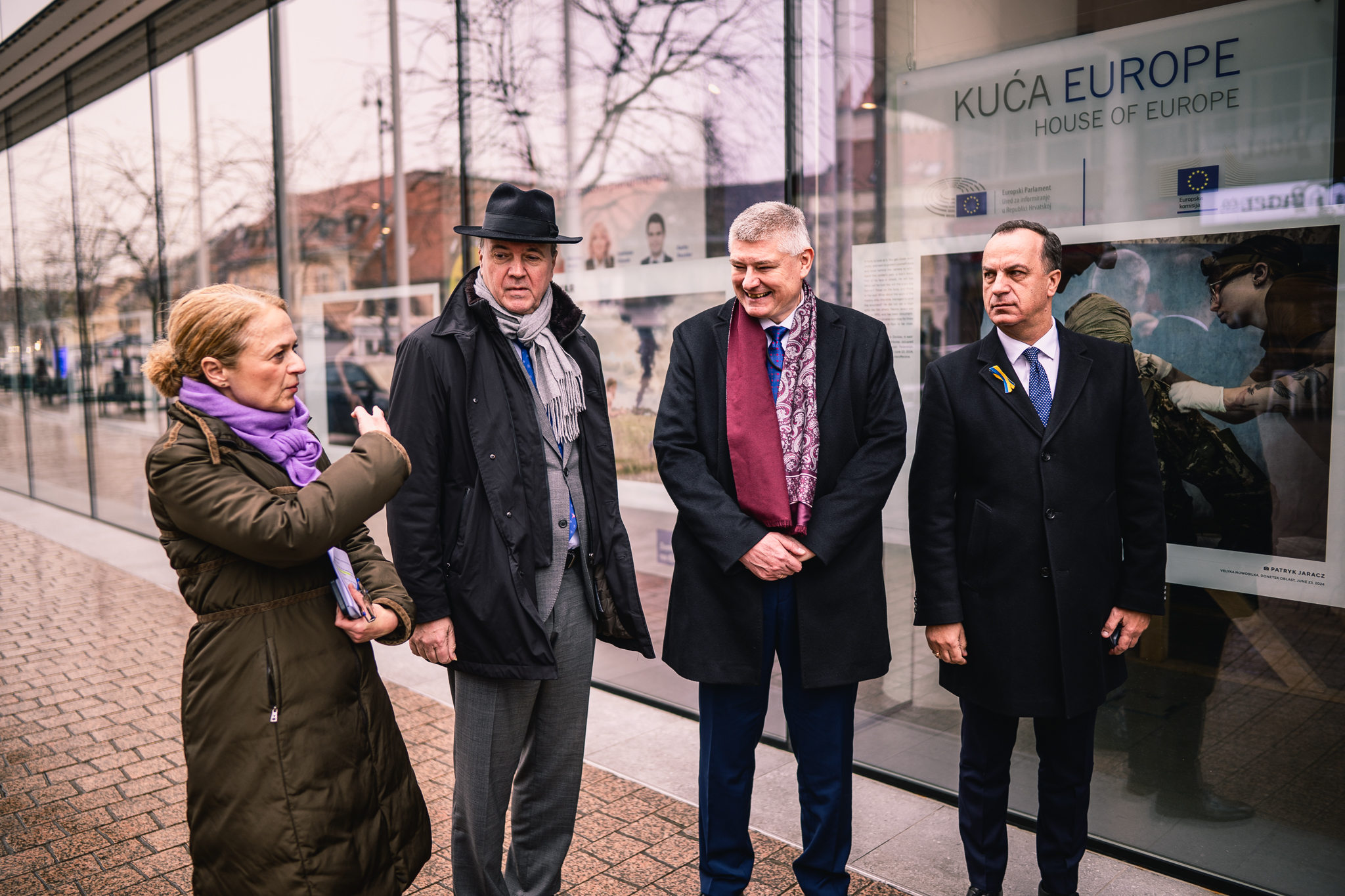 Povodom 3. godišnjice ruske agresije na Ukrajinu, Veleposlanstvo Republike Poljske u Zagrebu, zajedno s Predstavništvom Europske komisije i Veleposlanstvom Ukrajine u Hrvatskoj, organiziralo je otvorenje izložbe pod nazivom „Oči rata“. Ona se sastoji od 10 fotografija, čiji su autori poljski reporteri, a koje dokumentiraju ratnu svakodnevicu u Ukrajini. Svaka fotografija popraćena je opisom osobnih iskustava fotografa, koji je pripremila Magdalena Rigamonti. Fotografije su izložene u izlogu Kuće Europe – Predstavništva EK i EP (Kuća Europe, Augusta Cesarca 4) u Zagrebu.