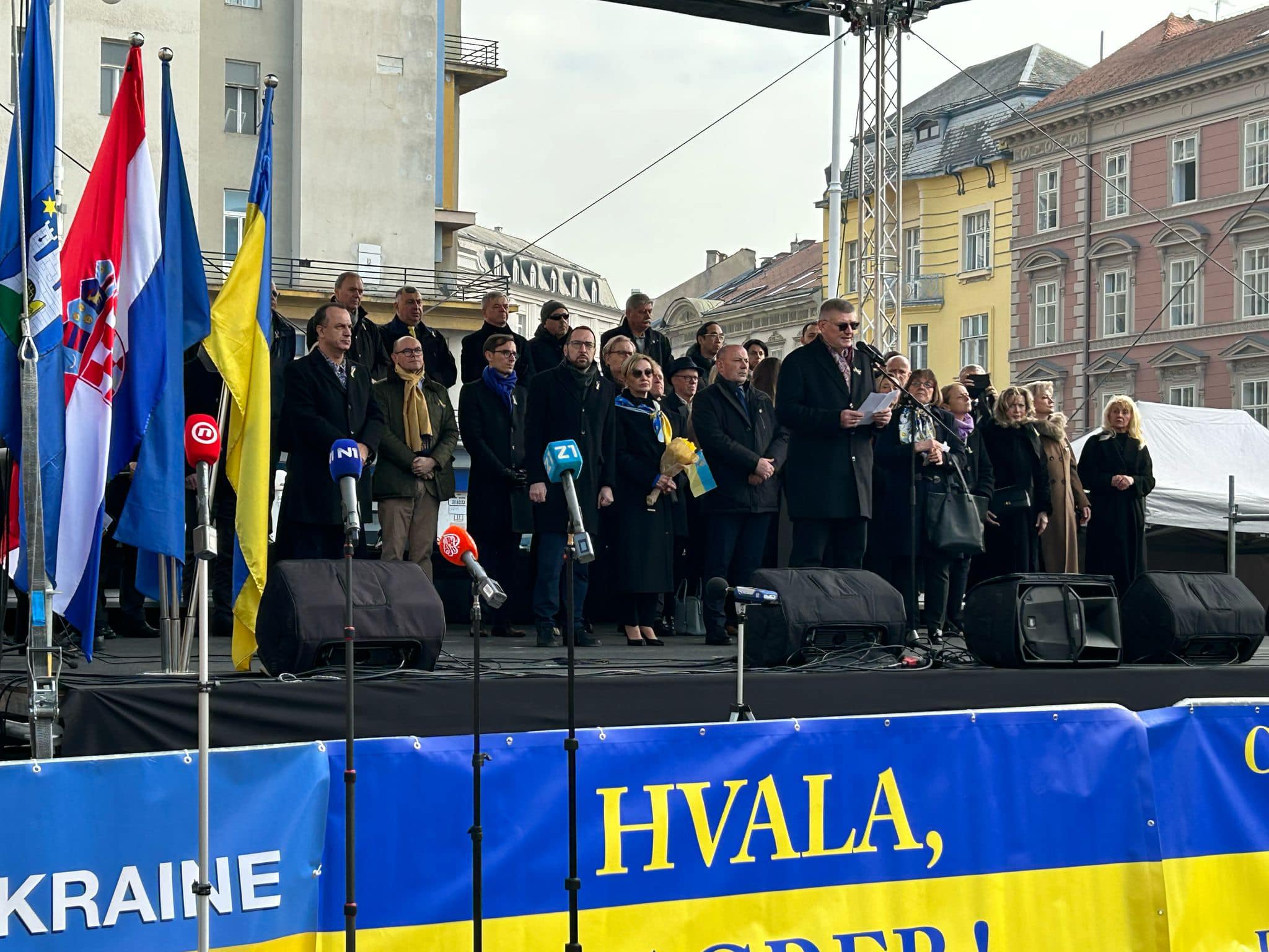 U subotu 22. veljače 2025. na Trgu bana Josipa Jelačića u Zagrebu održan je skup potpore Ukrajincima i Ukrajini povodom 3. obljetnice brutalne ruske agresije na tu zemlju. Skupu su nazočili predstavnici Vlade Republike Hrvatske, Predstavništva Europske komisije, zagrebačkih gradskih vlasti i diplomatskog zbora u Hrvatskoj.