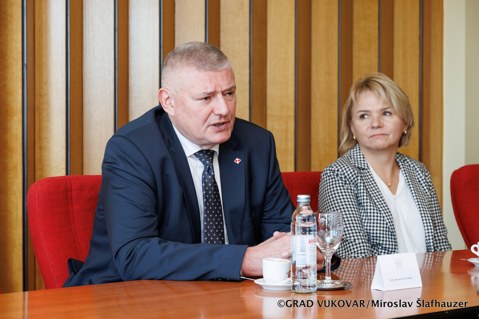 Tijekom sastanka s predstavnicima gradske vlasti na čelu s gradonačelnikom g. Ivanom Penavom (koji je ujedno i potpredsjednik Sabora Republike Hrvatske), Veleposlanik je imao priliku upoznati se s poviješću i suvremenim problemima Vukovara te cijele istočne Slavonije. Među ostalim temama razgovaralo se i o planovima za zajedničke pothvate u sklopu nadolazećeg poljskog predsjedavanja Vijećem EU te uspostavljanje kontakata između Vukovara i poljskih lokalnih samouprava.