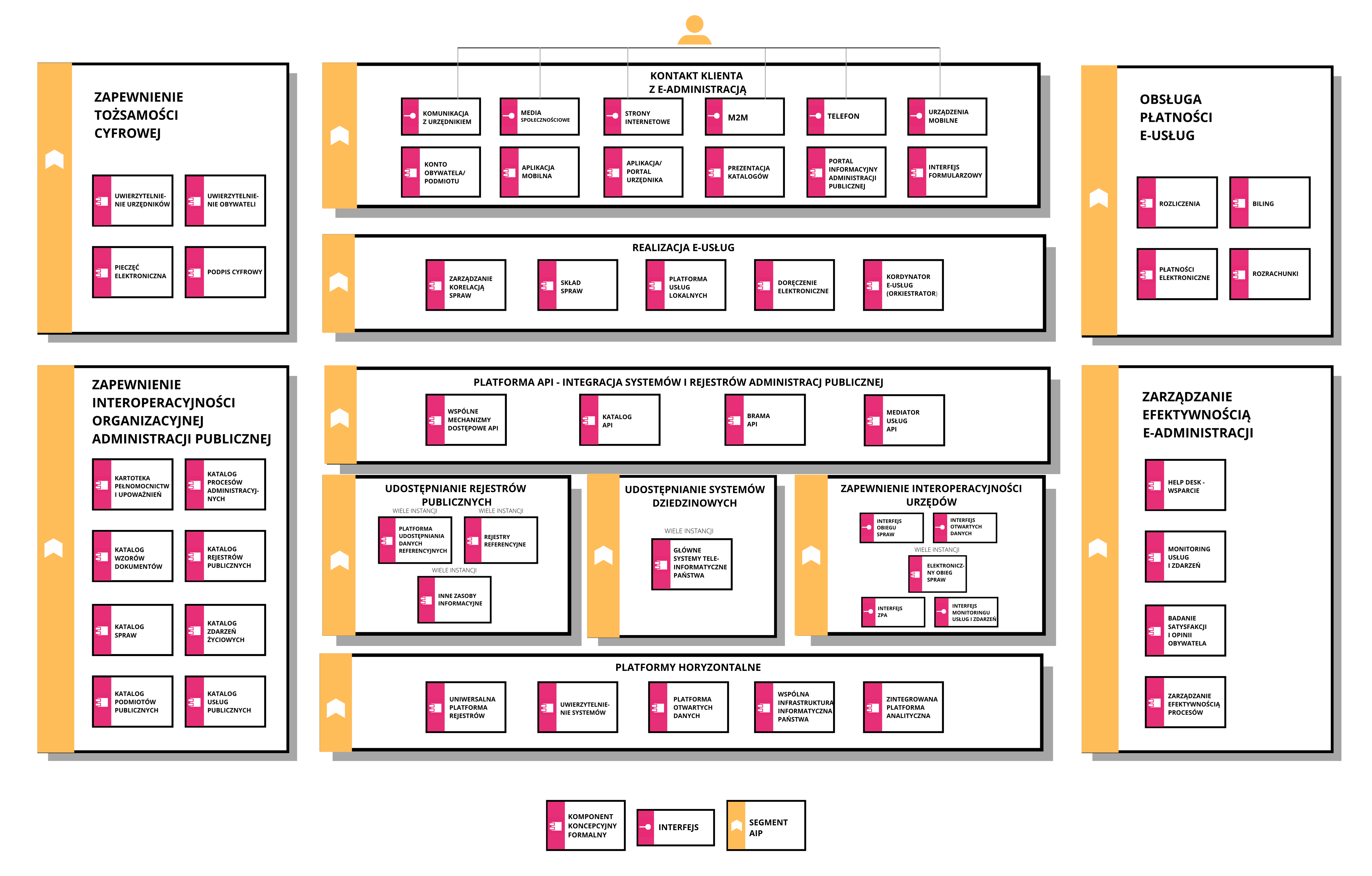 Segment opisujący funkcjonalność dotyczącą zapewnienia, w skali kraju i UE, interoperacyjności pomiędzy systemami centralnymi, sektorowymi oraz lokalnymi wykorzystywanymi w administracji publicznej.