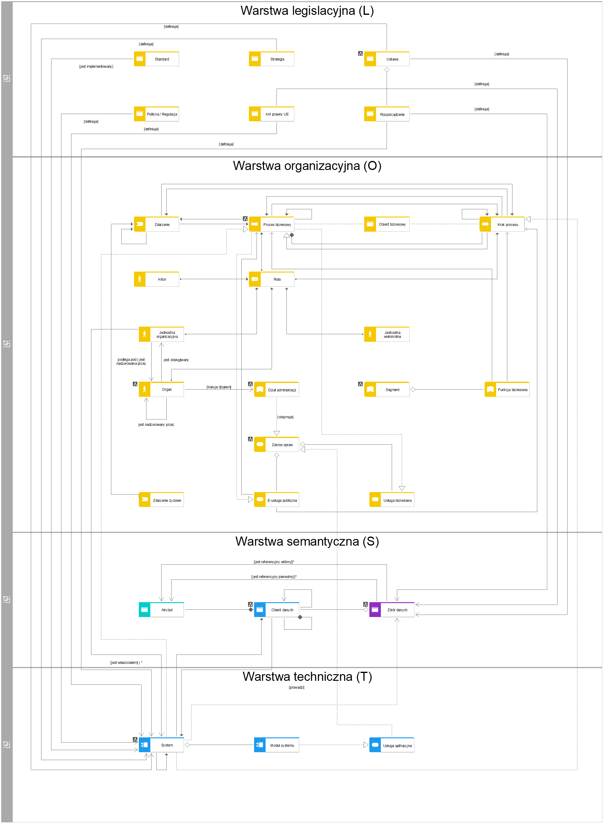Metamodel AIP zgodnie z założeniami EIRA koncentruje się głównie na czterech warstwach (LOST):