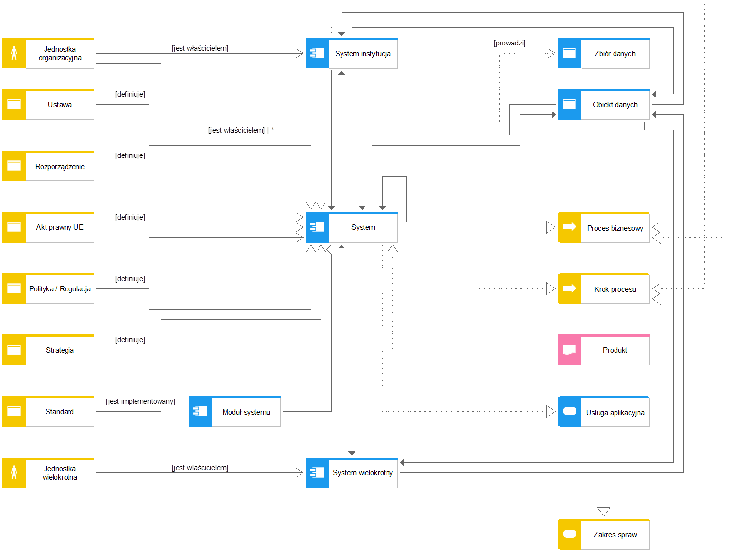 Metamodel AIP odnosi się do Modelu AIP. Poniżej przedstawiono definicje obu pojęć (zobacz: Słownik pojęć):