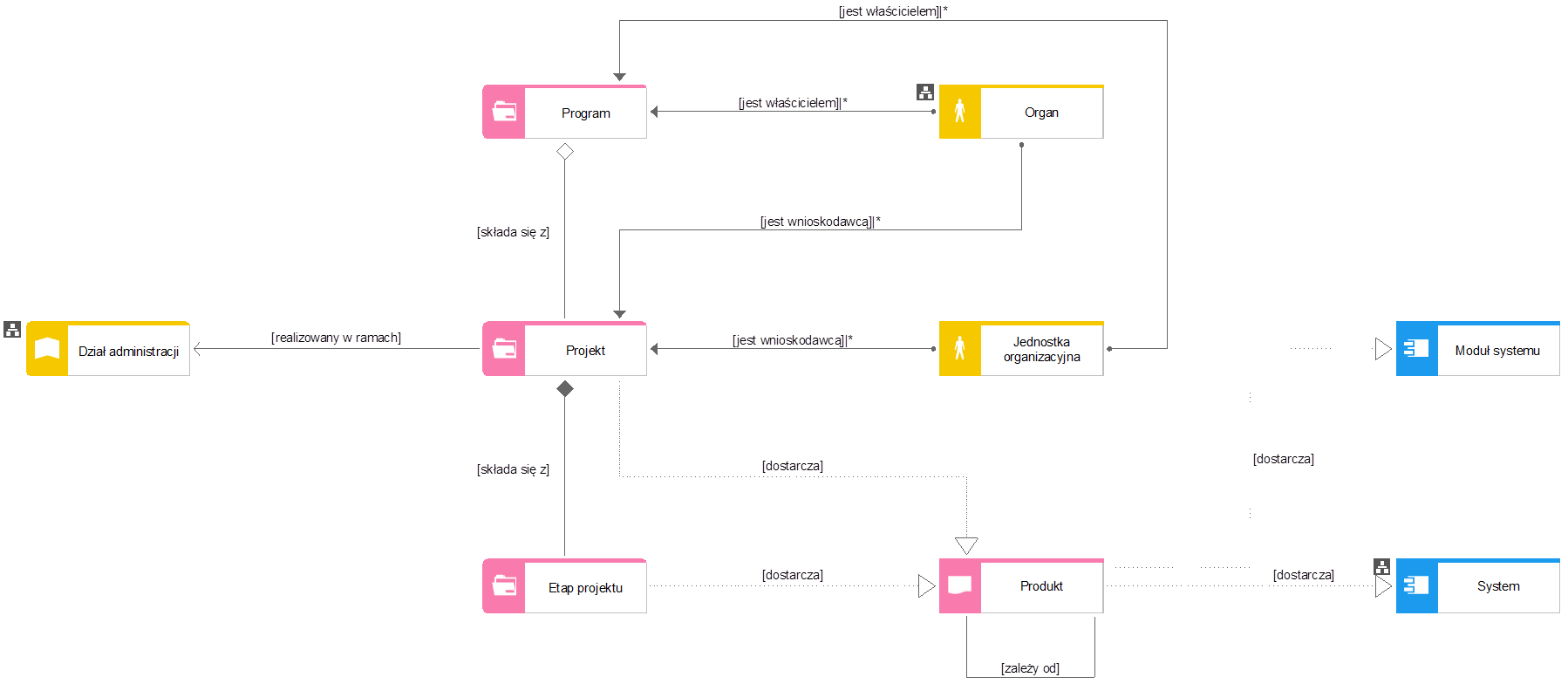 Główne obiekty i relacje metamodelu