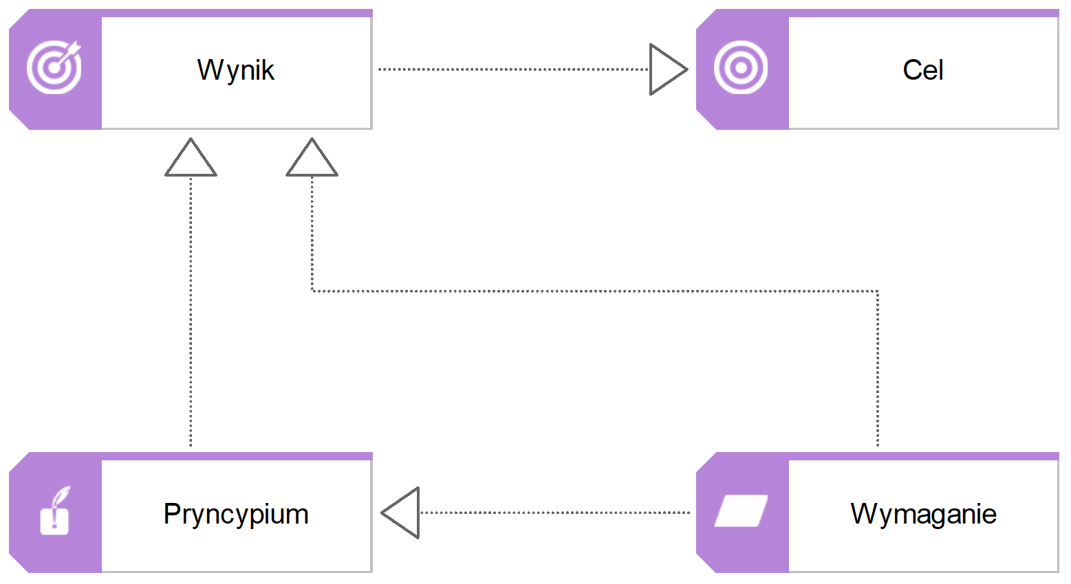 Cel reprezentuje ogólne określenie intencji, kierunku lub pożądanego stanu końcowego organizacji i jej interesariuszy. W ramach repozytorium AIP przetwarzane są cele państwa związane z transformacją cyfrową oraz cele stawiane bezpośrednio przed Architekturą Informacyjną Państwa. |