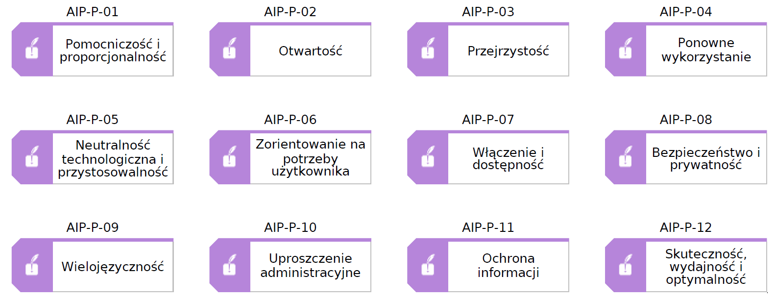 Pryncypia architektoniczne nie są prostą implementacją Europejskich ram interoperacyjności (EIF) – dokonano ich daleko idącego dostosowania do sytuacji Polski i Celów transformacji cyfrowej.