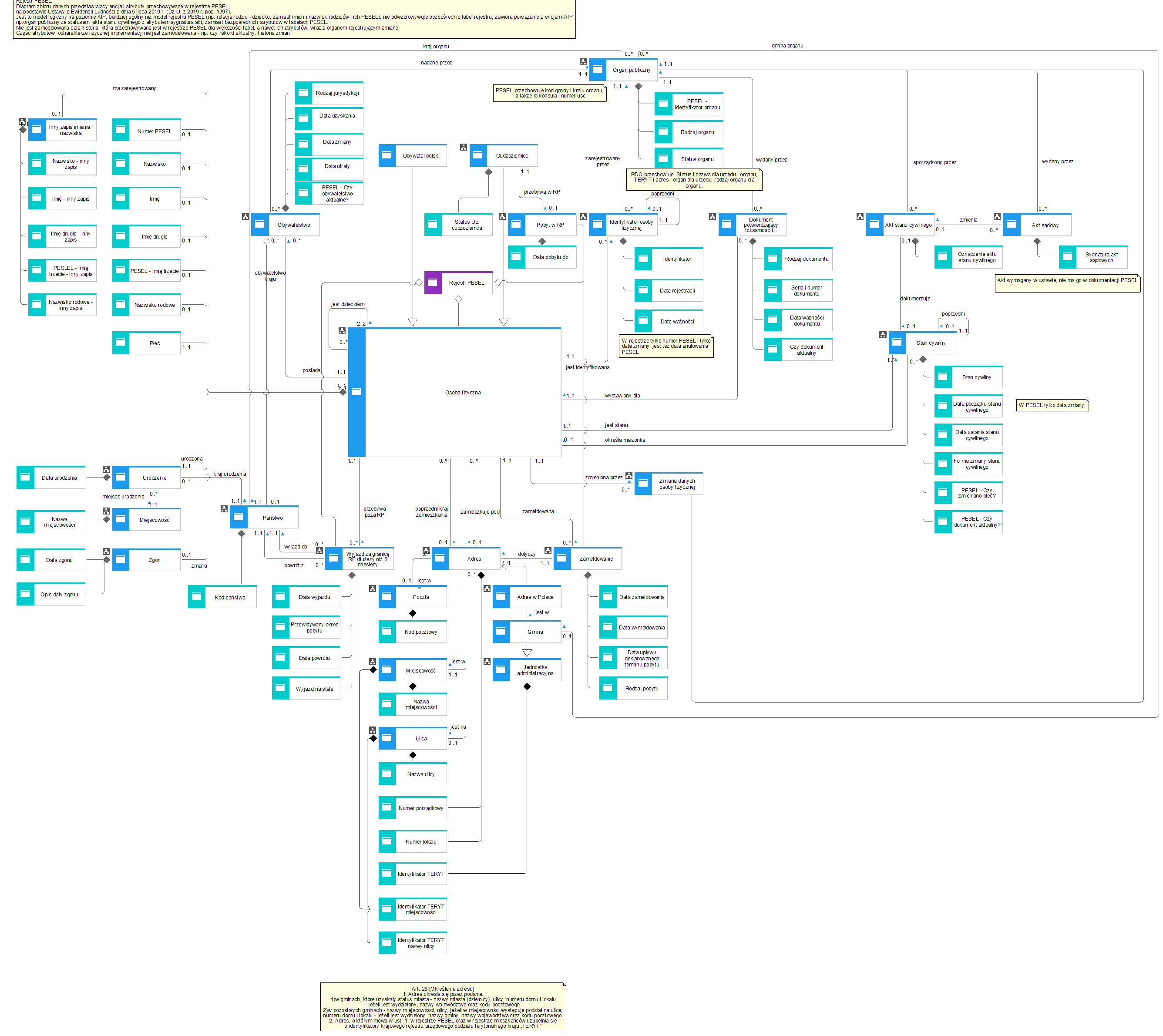 Rejestr PESEL zawiera podstawowe dane identyfikujące tożsamość i status administracyjno - prawny osób fizycznych oraz ich adres zameldowania, gromadzone i udostępniane zgodnie z Ustawą o Ewidencji Ludności. Jest referencyjnym rejestrem podstawowych danych osób fizycznych: obywateli polskich oraz części cudzoziemców przebywających w Polsce. |