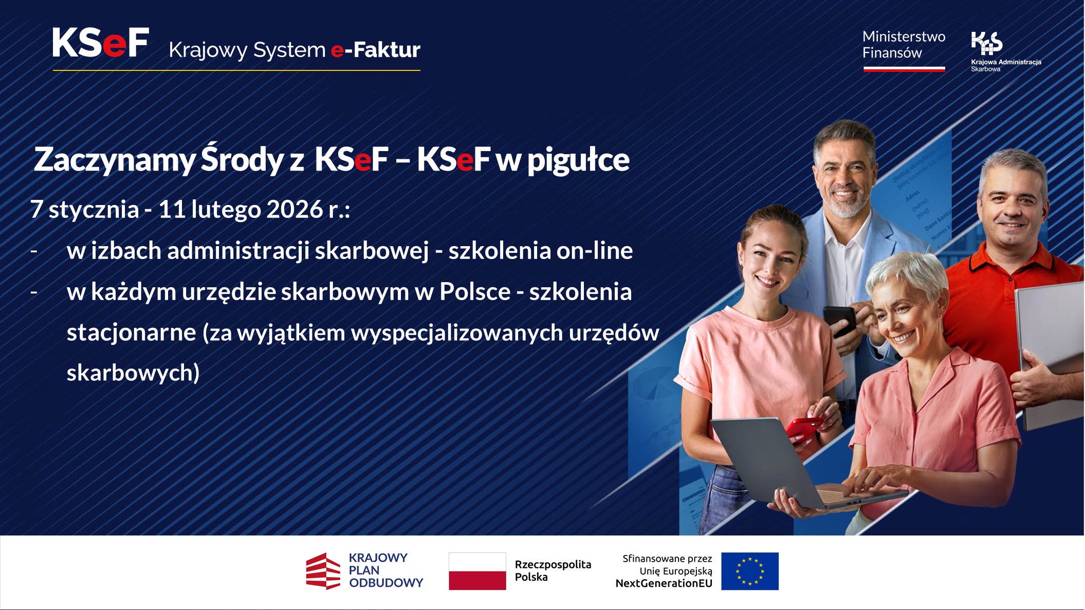 - Już w najbliższą środę kolejne szkolenia nt. Krajowego Systemu e-Faktur: „Środy z KSeF - KSeF w pigułce”.